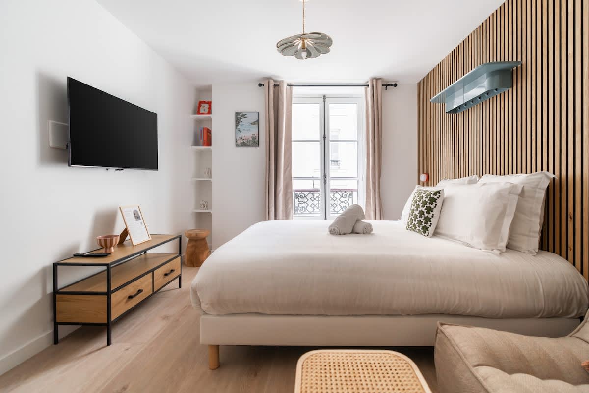 Entdecke Paris von diesem großartigen, brandneuen Juwel mit zwei Schlafzimmern im Herzen des 2. Arrondissements. Nur wenige Minuten von den Grands Boulevards, dem Musée Grévin, der Börse und der Oper entfernt, ist es ein idealer Ausgangspunkt, um die Stadt zu erkunden. Genieße einen wunderschön dekorierten, stilvollen, minimalistischen Raum mit einer voll ausgestatteten Küche, einer zentralen Klimaanlage und einem gemütlichen Wohnzimmer, das auf Komfort ausgelegt ist. Die Wohnung bietet Platz für bis zu vier Gäste und ist perfekt für einen eleganten Aufenthalt mit Familie oder Freunden.