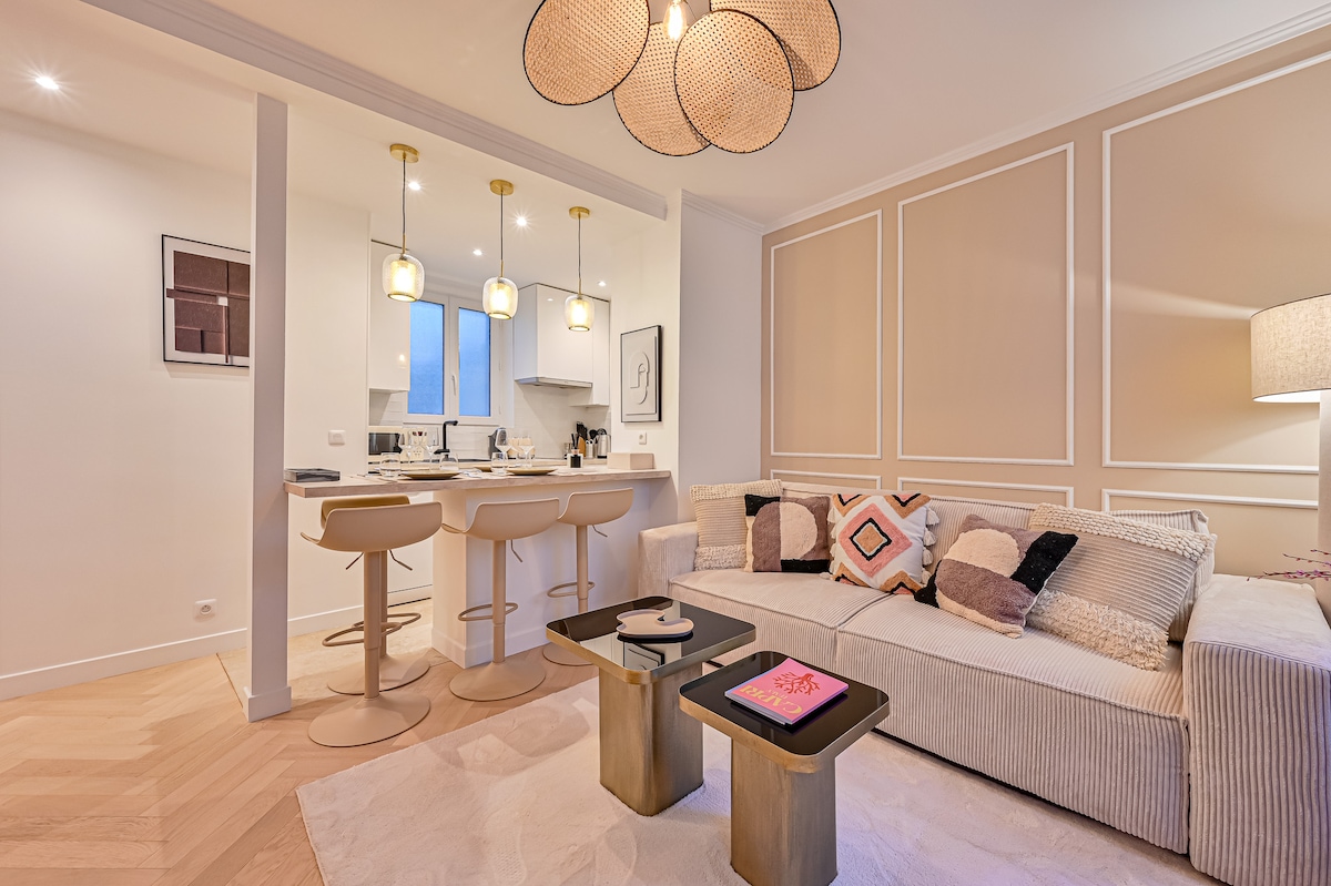 This beautiful fully renovated apartment is located just steps away from the Arc de Triomphe. Its cozy and warm atmosphere is a true invitation to unwind and relax. Whether for a business trip or a simple visit to our beautiful capital, we offer you the opportunity to live like a Parisian during your stay.