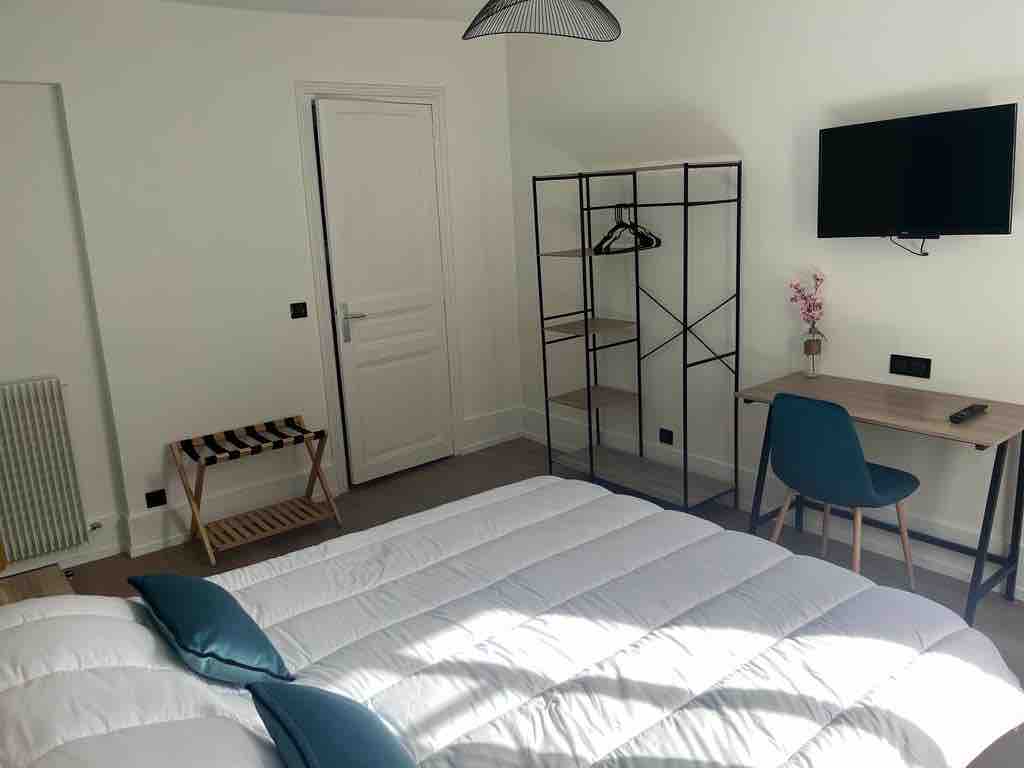 From the moment you enter you will be captivated by the attention to detail from velvet curtains to clever lighting and expansive mirrors this room features a double dressing room an italian shower an espresso machine a cozy 160 200 bed and luminous views over rue riboutte double glazed windows guarantee absolute calm making it perfect for peaceful long stays in paris.