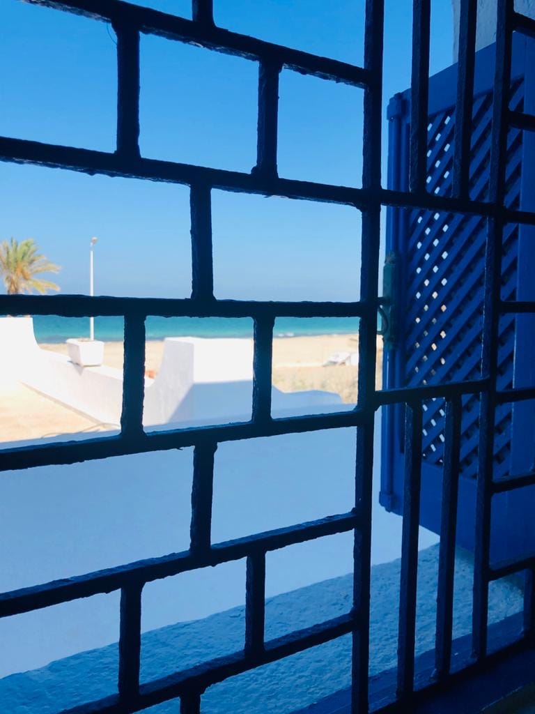 A proximité de Djerba, dans une palmeraie, jardin fleuri, près d'une plage de pêcheurs, 240m². 6 chambres (quatre climatisées), salon maure, 3 terrasses. Gardien, possibilité de s'arranger avec lui pour se faire livrer des repas ou pour ménage au cours du séjour. Petits restaurants à proximité en saison. Ménage de sortie inclus. Les voyageurs sont avertis que le climat n'est pas méditerranéen mais sahélien : vent de sable, ce qui a une incidence sur le ménage, très chaud l'été, sel donc rouille