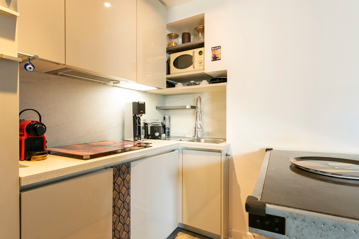 Genießen Sie eine moderne Wohnung in einer sicheren Residenz „Passage Oberkampf“ in Paris in der Nähe des Marais-Viertels. Sie bietet Platz für bis zu 4 Personen, verfügt über eine halboffene Küche, eine herrliche italienische Dusche und ein Zimmer mit einem Arbeitsbereich und einer schnellen Internetverbindung (Glasfaser). Renommierte Orte wie der Cirque d'Hiver, das Bataclan, der Place de la République oder die Opéra Bastille sind von hier aus zu Fuß erreichbar.
