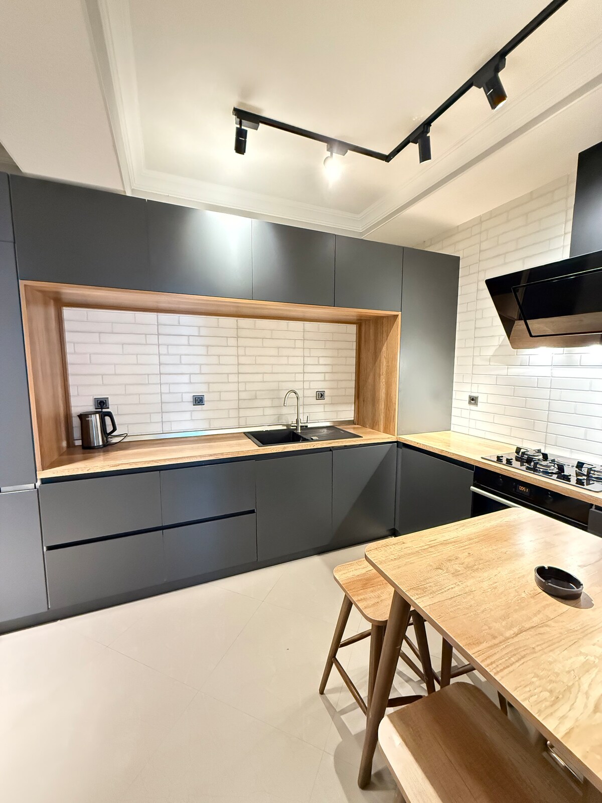 Whether you're traveling for work or as a tourist: this place has you covered. Our newly-renovated apartment was designed with comfort and practicality in mind. Soundproof walls will allow you to get a good night's rest. Heated floors will keep you warm in winter and the ACs will cool you down when it's hot outside. Those who like cooking will surely enjoy our spacious kitchen. There's a comfortable office chair and a desk for people that need to work from home. Looking forward to welcoming you!