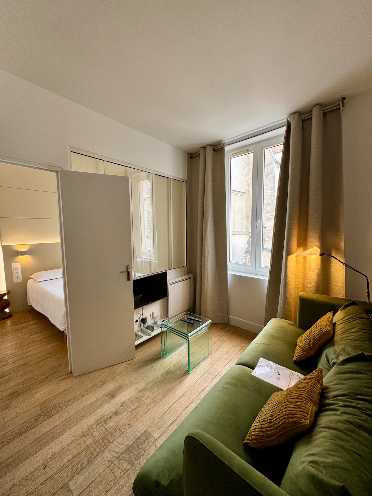 One-Bed M ist eine schicke und komfortable Wohnung im 3. Stock, im Herzen des Stadtteils St-Denis - Montorgueil. Hell, liegt sie an einer ruhigen Straße, neben der Montorgueil Street. Du kannst dich gut ausruhen und alle Annehmlichkeiten dieses Fußgängerzonenviertels mit einer unglaublichen Aufregung genießen!