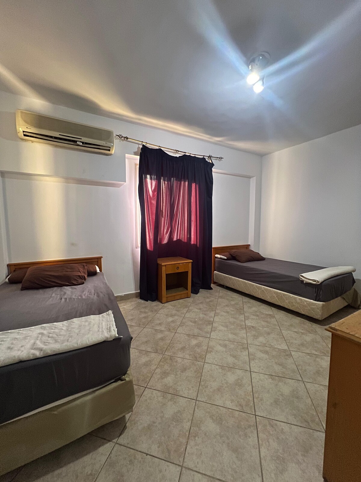 Enjoy a stylish experience at Welcome to your spacious family-only retreat in the heart of 6th October City! This modern 3-bedroom, 2-bathroom apartment is designed for comfort, relaxation, and convenience—perfect for families and business travelers who want a quiet, clean, and fully equipped stay. The Space 1 bedroom with a double bed 2 bedrooms with two 120cm beds each 2 full bathrooms with showers Bright living room with a 55” Smart TV Fully air-conditioned for year-round comfort
