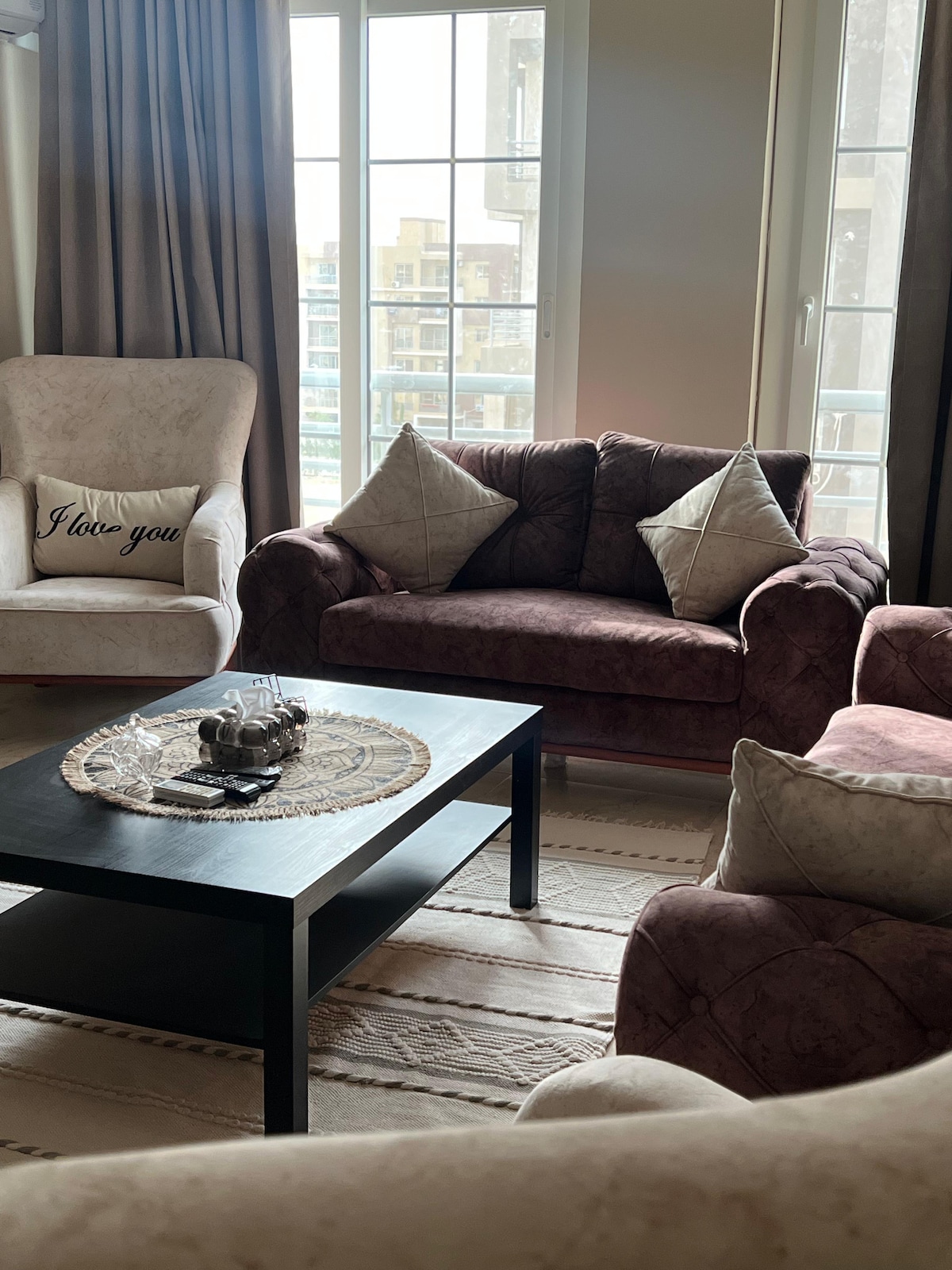 Enjoy a comfortable stay in this fully equipped and spacious apartment located in the heart of 6th of October City. Perfect for families, business travelers, and tourists, offering a quiet environment with quick access to all major attractions. ⭐ Apartment Features 2 bedrooms 2 bathrooms 55'' TV smart Comfortable living area Fully equipped kitchen Wi-Fi Internet Air conditioning Balcony Privet Parking available