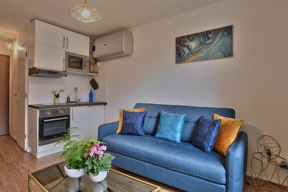 04/02/2025 : high-quality new bedding. You will be welcomed in a brand new air-conditioned flat with a cosy atmosphere and a small private balcony. The flat has been entirely designed and decorated with the comfort of our Guests in mind, so that you can enjoy an unforgettable experience during your stay in Lyon 8ème. Relax in calm and elegance. You will be close to the Tony Garnier Museum, the Maison de la Danse, the famous Gerland district and 5mn from the city centre and Place Bellecour.