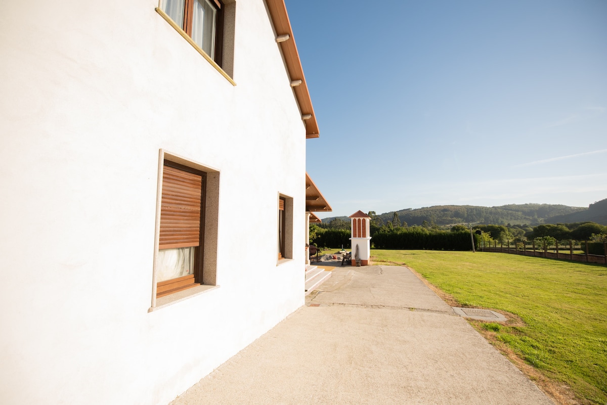 In dieser Unterkunft kannst du Ruhe atmen: ein Ort, um dem Klang der Natur zu lauschen, dich vom Stress der Stadt zu trennen, Wanderwege zu gehen, im Freien zu frühstücken und im Freien zu essen, im Pool zu baden, während du einen guten Grill als Paar oder mit der Familie zubereitest, in einer spektakulären Umgebung, in der du den höchsten Aussichtspunkt von Coruña mit seiner beeindruckenden Aussicht besuchen kannst, zum Flussstrand im Lake Encrobas, Wasserpark, gehen kannst. In der Nähe des Flughafens Coruña und De Santiago.
