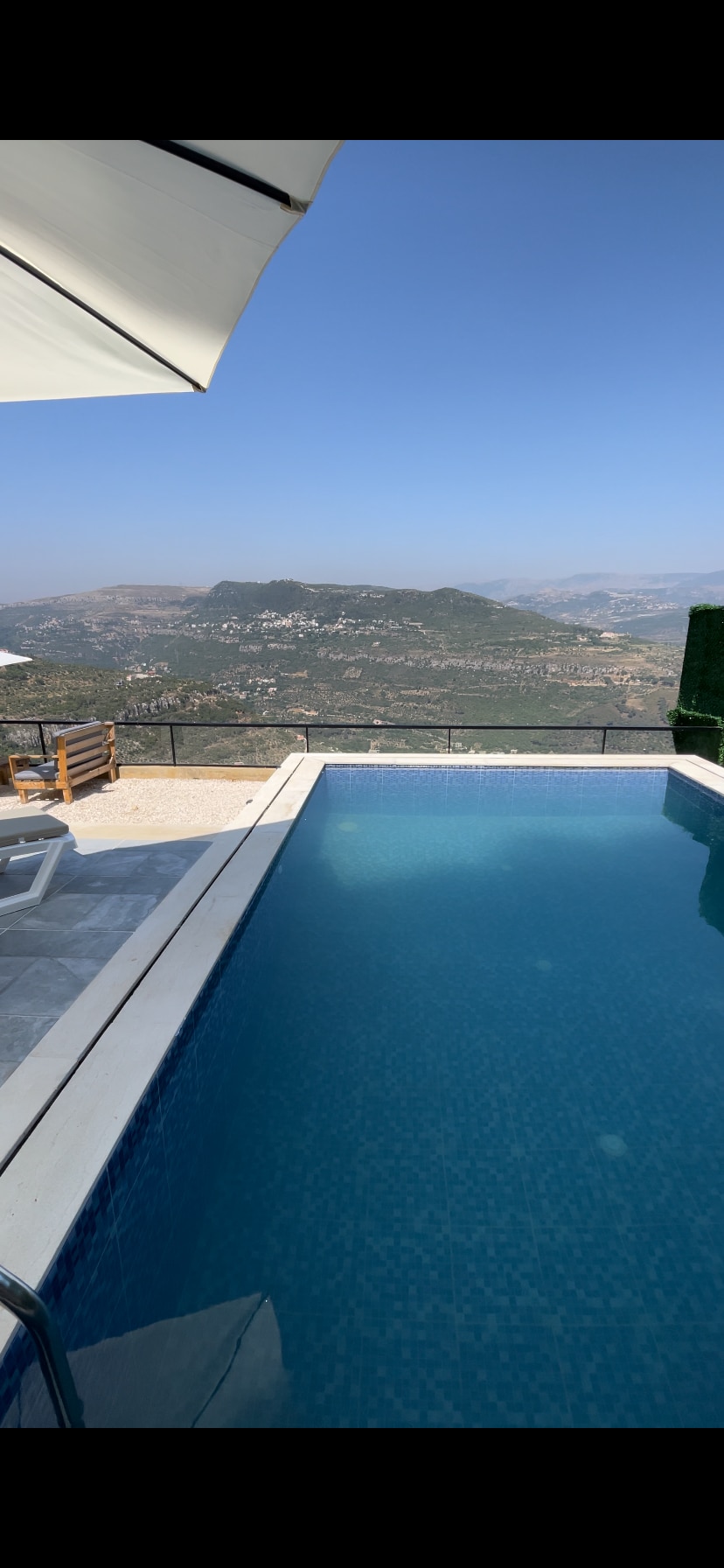 Our chalet is equipped with a solar system and consists of a master room, a kitchenette and a bathroom with shower. You can enjoy watching movies on Netflix on the smart TV. The outdoor area includes a terrasse opposite to Chouf mountain with a barbecue area, shisha area,m and a swimming pool. Both outdoor and indoor areas can be used for your event celebrations. Parking capacity is 10 cars. Sleeping capacity is 4 people (inflatable mattress available upon request).