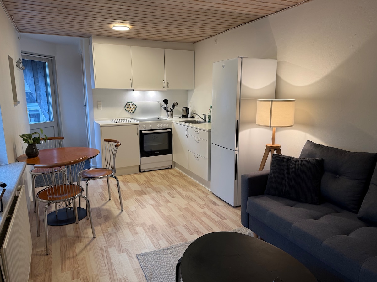 Cozy Apartment on a Country Estate in Peaceful, Natural Surroundings, Close to Aalborg. Located in a quiet area with grazing horses and a charming rural atmosphere, while still being close to the city. The apartment features a new kitchen, a nice bathroom, and new beds. There is also a terrace with a table and chairs, perfect for relaxing outdoors. The Space: Towels and bed linen are provided. The kitchenette is equipped with a stove, a combination oven, fridge/freezer, and a dishwasher
