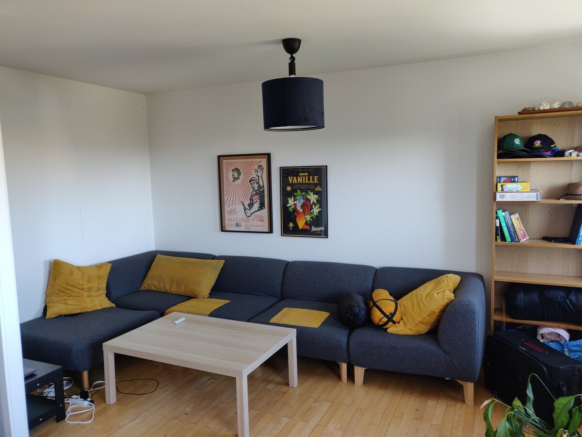 Willkommen in einer romantischen und farbenfrohen 2-Zimmer-Wohnung in ruhigem Risskov/Vejlby – perfekt für Paare, Alleinreisende und kleine Gruppen gleichermaßen. Großes Wohnzimmer mit viel Licht, farbenfroher und gemütlicher Einrichtung, Balkon mit Sonnenuntergang und malerischem Blick. Den Sonnenaufgang kann man vom Schlafzimmer und der Küche aus genießen. Die Wohnung verfügt über eine voll ausgestattete Küche, WLAN, TV und Platz für Hausaufgaben. Kingsize-Bett und 2 Sofas. In der Nähe von guten Einkaufsmöglichkeiten, kostenlosen Parkplätzen und einfachem Zugang zu AarhusC mit dem Bus.
