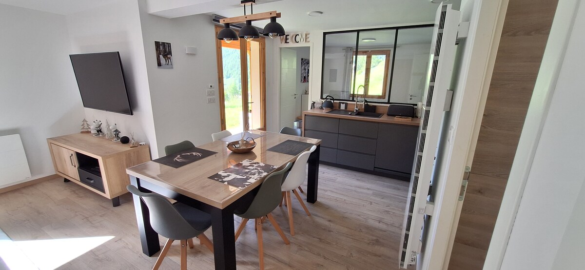 Wohnung in einer Komfortresidenz Sonnenterrasse. Innenpool mit Jacuzzi Parkplätze. Skischrank Bad mit Badewanne. Unmittelbare Nähe zu den Skipisten ++ Sauna & Massage extra. Vermietung von Bettwäsche und Handtüchern zusätzlich. Entspannender Aufenthalt in einem Naturschutzgebiet, das Ihnen die Garantie für einen totalen Tapetenwechsel bietet. Zwischen Skifahren, Nordic Ski und Schlittenhunden wird die ganze Familie in einem typischen Dorf glücklich sein