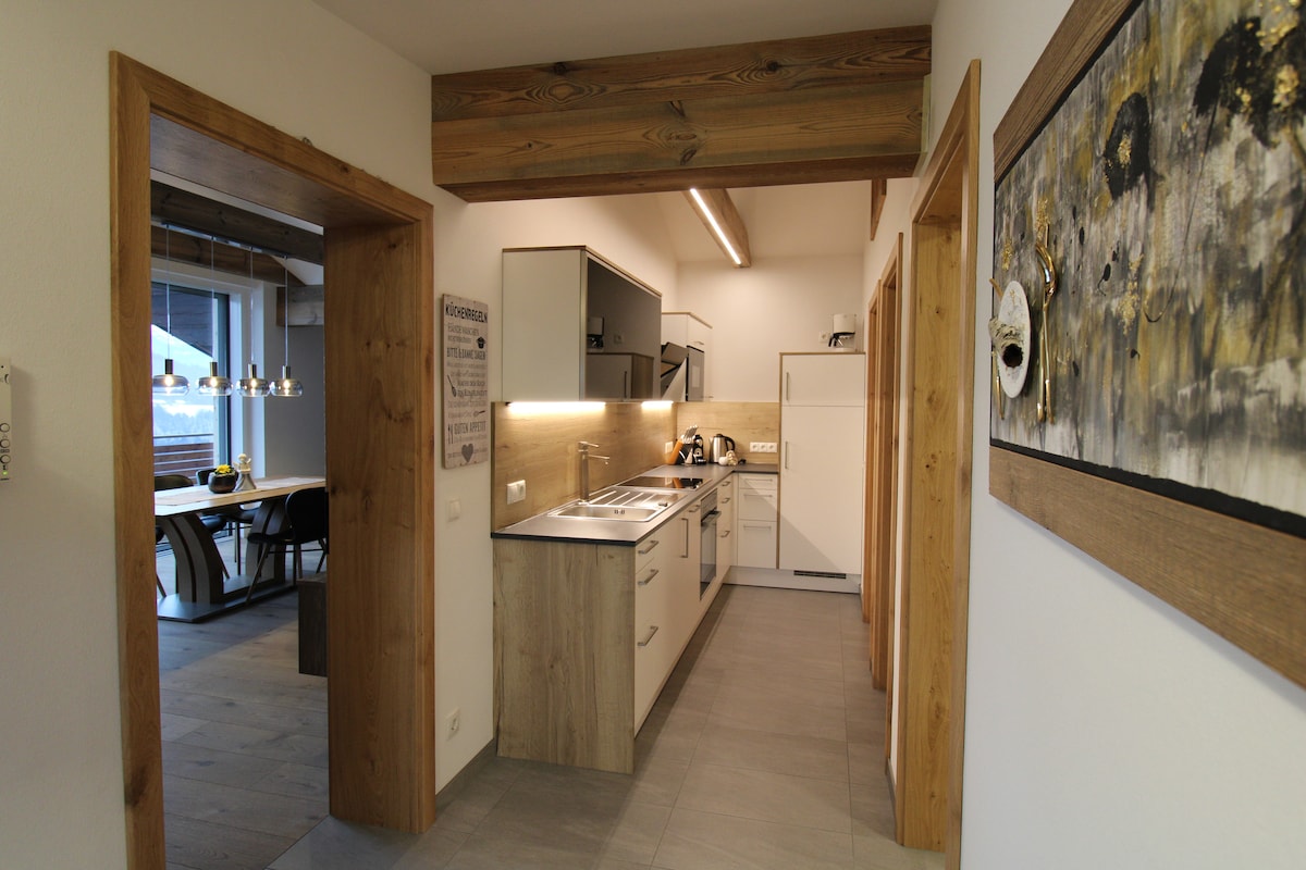 In der Sauna mit grandiosem Bergpanorama kannst du entspannen und anschließend auf dem großzügigen Balkon auf Chill-Möbeln die grandiose Aussicht genießen. Im 2-Zimmer-Appartement findest du alles, was zu einem perfekten Urlaub gehört. Zauber in der hochwertigen Miele-Küche ein leckeres Menü und genieße vor dem Kamin einen guten Tropfen Wein. Erholsamen Schlaf findest du im Echtholz-Zirbenbett mit hochwertigen Matratzen. Wenn du einen ruhigen Platz suchst bist du hier genau richtig!