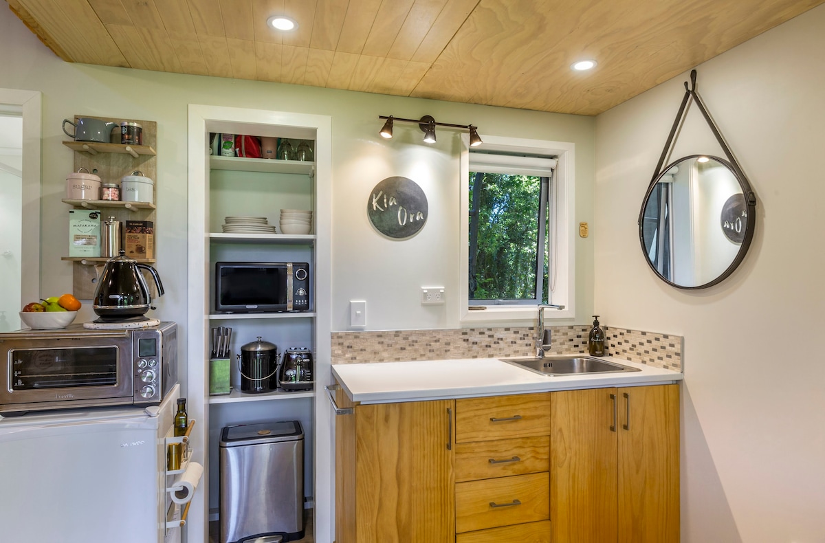 Individuell gestaltetes Taupō Tiny House: Kōwhai Korner