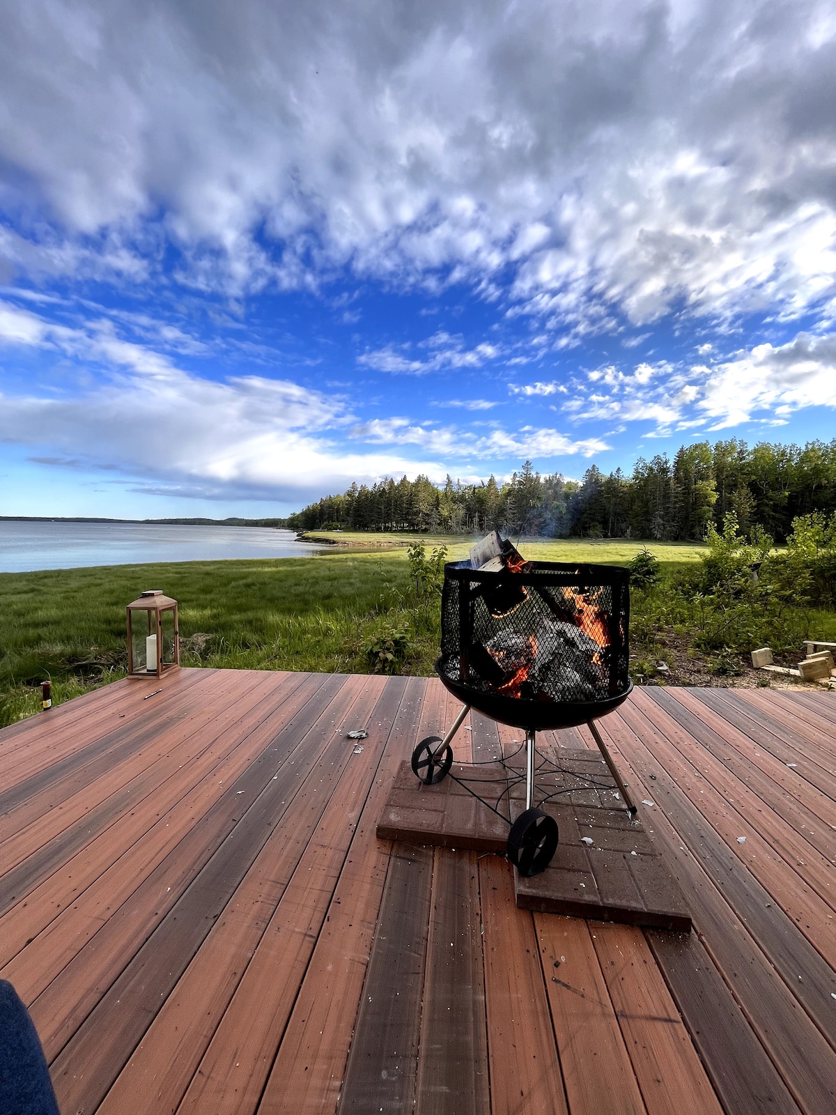 Bring the whole family to this great place with lots of room for fun. With our chalet style house you will have plenty of space for entertaining. We are located on a dead end road perfect for walks with the family with breathtaking views of the sunset all summer. The hot tub located on the front porch is perfect for stargazing at night! The house is located 23 miles from Ellsworth, 10 miles from Winter Harbor which is home to the ferry terminal that will take you to Bar Harbor for the day!
