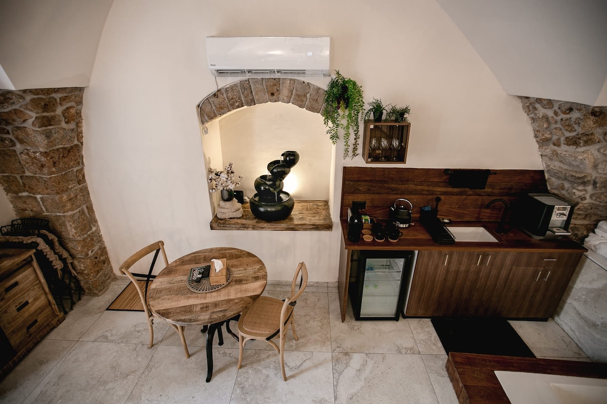 Im Herzen der Altstadt von Acre, romantische Wohnung, entworfen und schön. Verfügt über eine Küche, eine Kaffeemaschine mit einem luxuriösen Holandia-Tempurbett, eine hohe Bettwäsche und Handtücher , eine hochwertige Stereoanlage, Kabel-TV und einen authentischen Balkon. Unsere Suite hat einen Blick auf die Shazlia vom Balkon. Israelische Staatsbürger müssen 17 % Mehrwertsteuer zahlen. mit Treppe im ersten Stock.