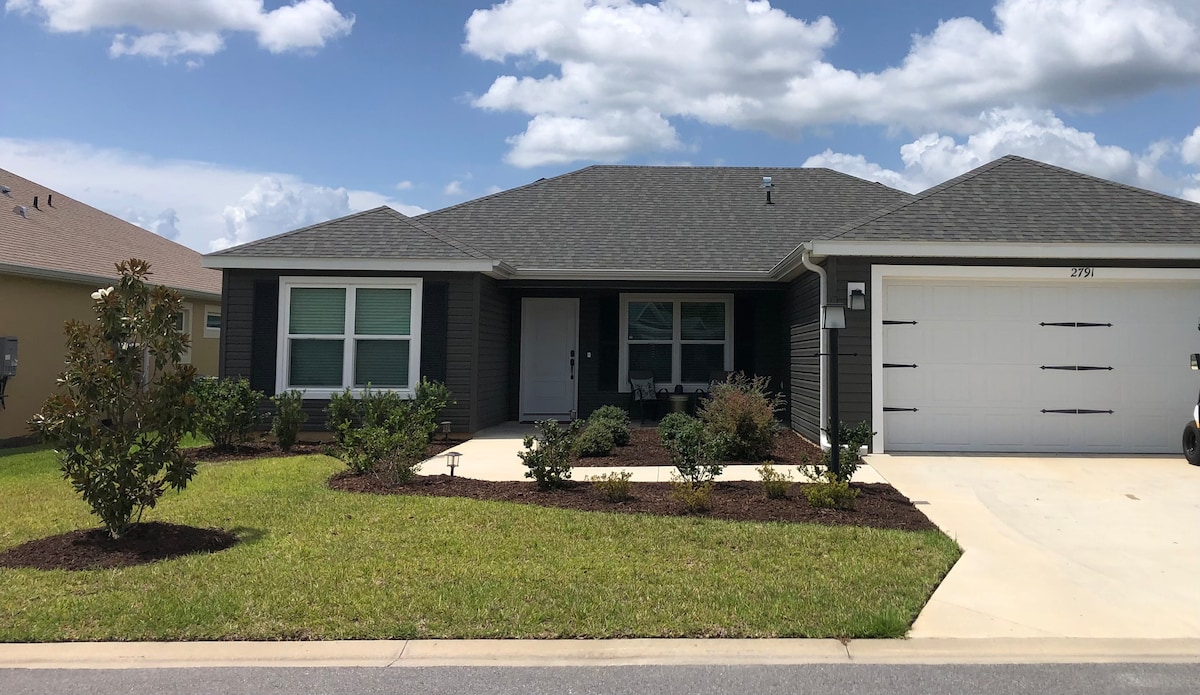 Relax at this peaceful, centrally-located home. A spacious, impeccably clean home with private backyard minutes from Brownwood Square & Sawgrass where you will find FREE nightly entertainment, restaurants and shops. It is within walking distance of adult only pool, pickleball courts, walking & cycling paths. Close to golf & disc golf courses, pitch & put, cornhole, Recreation centers, family pool & grocery store. Fully equipped kitchen with starter pack. High speed internet.