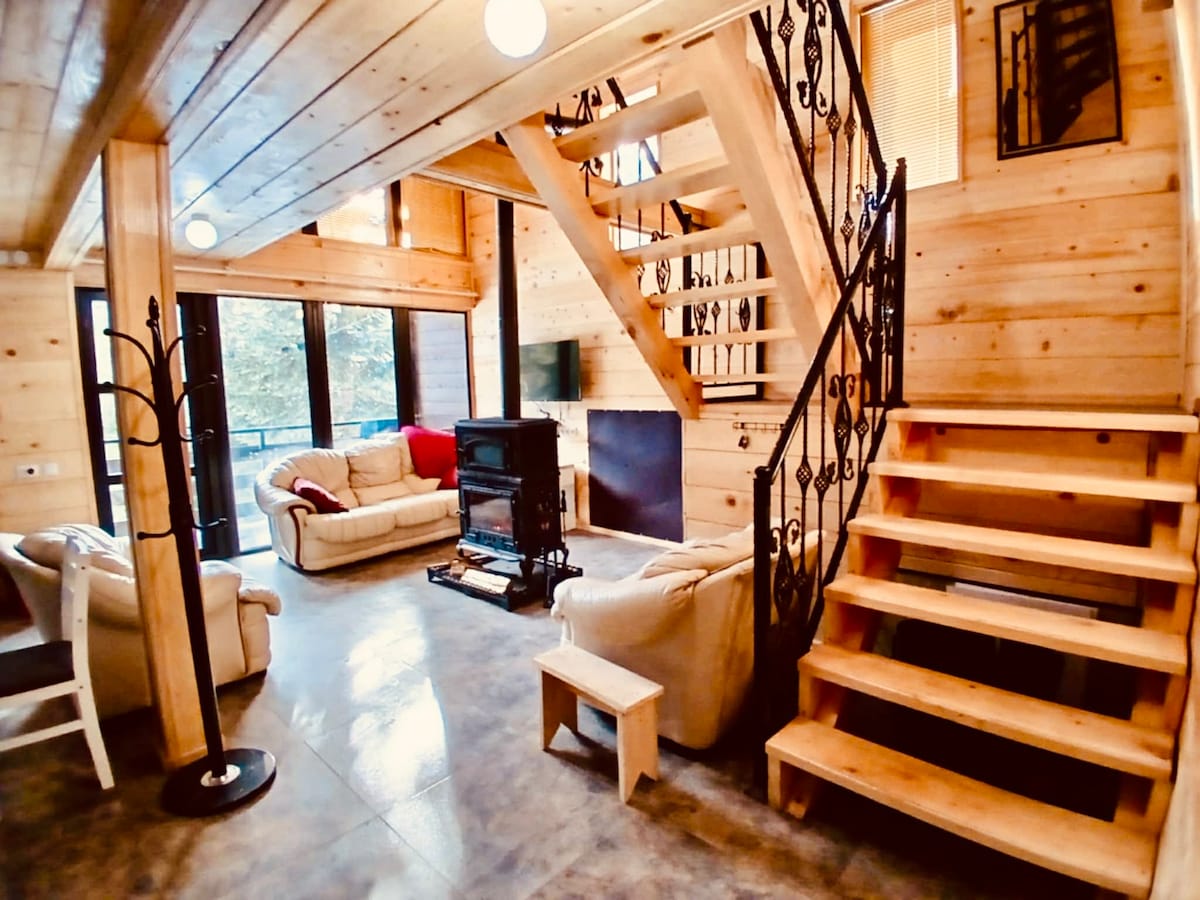 Die Berge sind besser als die Berge ⛰Und es ist besser, in Georgien zu übernachten, nur in unserem A-Rahmen-Cottage mit Panoramabalkon, Whirlpool und sauberer Bergluft zu entspannen🏞 Als Gegenleistung für dunkle Ausflüge zu Wasserfällen in der Hitze kannst du in unserem Traumhaus mit allem, was du brauchst, um dich voll und ganz wohl zu fühlen, wählen.