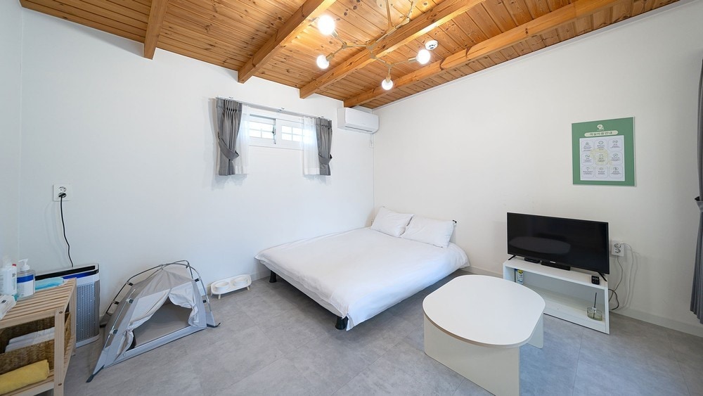 안녕하세요. 저희는 다양한 휴식 공간을 연구하고 제공하는 ONDA입니다. 이 곳에서 머무르실 모든 분들께서 편안하고 행복한 시간을 보내기를 바랍니다. [숙소 소개] 반려견과 함께 머물기 좋은 아름다운 자연 속의 제주 댕댕이 파크 리조트, 강아지를 위한 울타리와 안전한 놀이 공간, 미온수 수영장, 넓은 잔디 공용운동장 등 놀 거리가 가득한 제주 댕댕이 파크 리조트로 초대합니다. [객실 유형] 원룸형 (더블1+주방+화장실1)