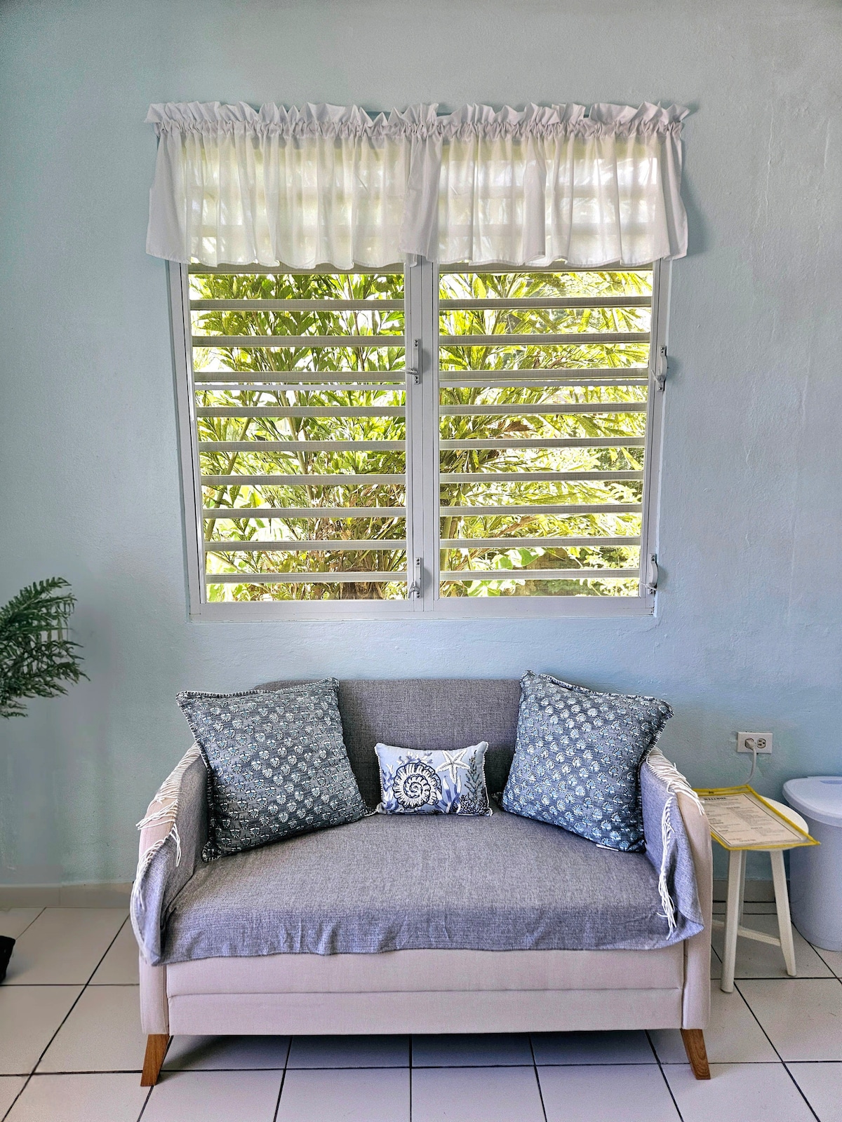 Charmante, rustikale, private Wohnung an unserem Haus in Playuela, Aguadilla, PR. Es hat einen eigenen Eingang, besteht aus einem Schlafzimmer mit einem Queensize-Bett, einem Badezimmer mit einer speziell angefertigten Badewanne mit einem atemberaubenden Meerblick und einem Gemeinschaftsraum mit einem Tagesbett, das in zwei Einzelbetten umgewandelt werden kann. Es verfügt über einen Essbereich, ein Sofa und eine voll ausgestattete Küchenzeile. Es gibt eine Klimaanlage im Schlafzimmer und im Gemeinschaftsbereich und die Unterkunft verfügt über einen Notstromaggregat. Ausgestattet für 3-4 Gäste.
