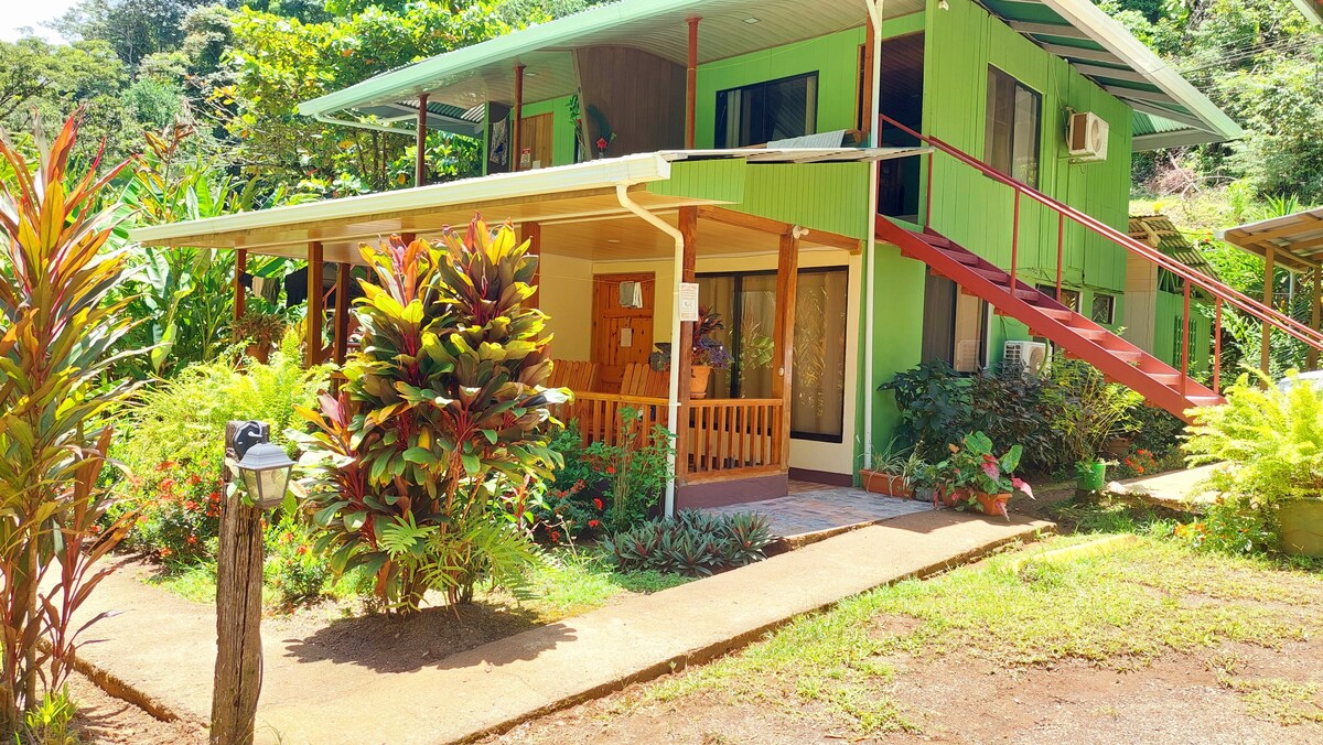 Unser Zimmer mit einem exquisiten Meerblick, umgeben von einem Garten, der Sie überraschen wird, mit dem Besuch von Affen mit Balkongesicht, rotem Lapa, Schmetterlingen, Tukanen, Leguanen und vielen weiteren Tieren. Vom Balkon Ihres Zimmers aus, auf dem Sie diese Tiere besuchen können, werden Sie sich wie im Wald fühlen. Ein 5-minütiger Spaziergang zum Strand von Agujitas bringt Sie zu einem erfrischenden Bad. Von hier aus kannst du einen Teil des Sonnenuntergangs beobachten.