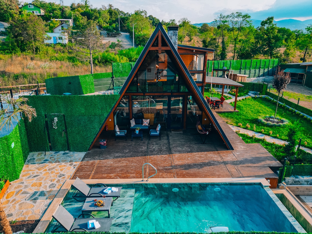 Unser Resort heißt Pentalow Cabin Unser Tourismus-Geschäftsdokument Nummer : 21879. - Die Gebühren beinhalten einen Service und ein Sprinkle-Frühstück im Zimmer - Bleib nicht in einem modernen Zuhause, während du die Natur in deinem eigenen Garten genießt. -Solierter heißer Pool - Wenn du willst, kannst du einen Grill anzünden oder dich mit deinen Liebsten am Feuer unterhalten - Dank Projection und Smart TV kannst du dir deine Lieblingsserie und -filme in einer warmen Umgebung ansehen