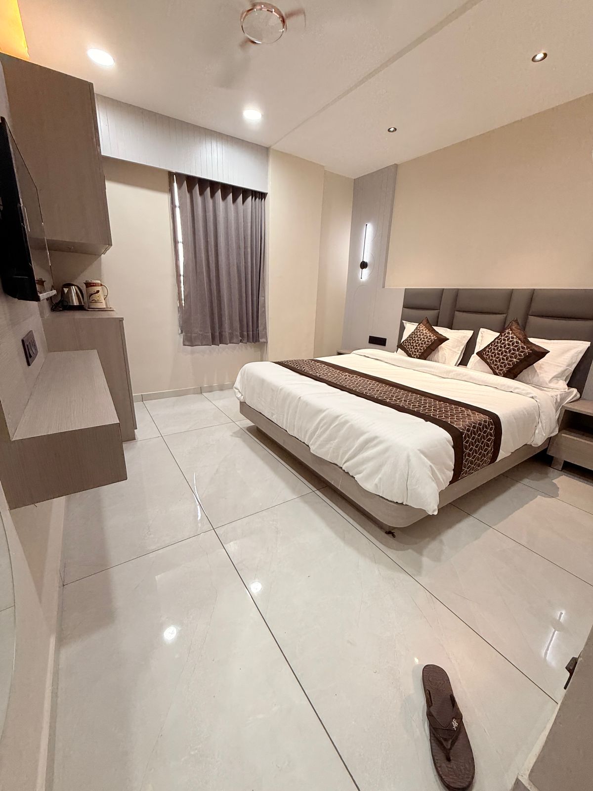 "Stay in a bright, well-ventilated room with AC, Wi-Fi, geyser, LCD TV, and a relaxing city view. Conveniently located in Satellite, opposite Seema Hall, with easy access to major attractions: SG Highway – 1 km Iscon Mega Mall – 2 km Ahmedabad One Mall (Vastrapur) – 4 km Prahladnagar Business Hub – 2 km Vastrapur Lake – 4.5 km Sabarmati Ashram – 10 km Ahmedabad Railway Station – 11 km Sardar Vallabhbhai Patel Airport – 17 km Ideal for both business and leisure travelers."