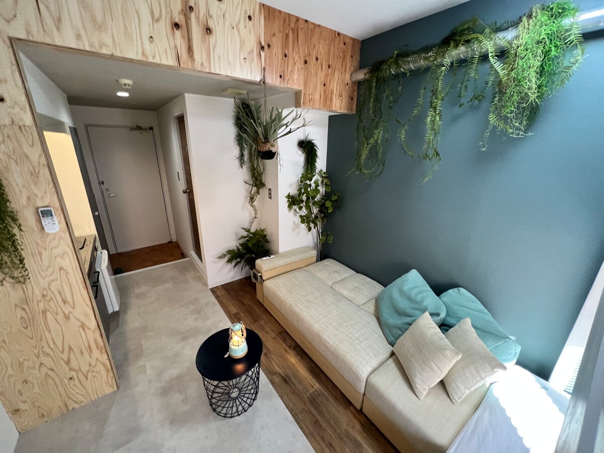 Just 1 stop from Nagoya Station, an 8-min walk from Taikōdōri Station. “Hanezu” is a 1LDK artful apartment in a quiet area, for up to 5 guests. Named after a soft, warm traditional Japanese color, this space is filled with gentle light and cheerful design. Inspired by Danish style and full of art, it’s perfect for couples or friends. Relax, feel at home, and make warm memories here. Great access to Nagoya Station and Sakae—perfect for sightseeing!