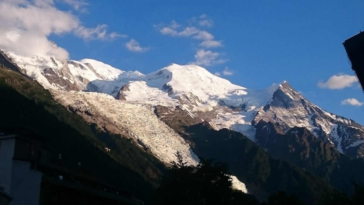 Schöne 55 m ² große Wohnung mit Balkon. 3. Stock mit fantastischer Aussicht auf den Mont Blanc. Tolle zentrale Lage an der Fußgängerzone. Ein Schlafzimmer. Kann bequem bis zu 4 Gäste beherbergen. Eine voll ausgestattete Küche, ein Badezimmer, ein Skischrank, ein beheizter Pool im Sommer (von Mitte Juni bis Mitte September). Alle Dienstleistungen vor deiner Haustür. Bus 200 m, Zug 150 m, Brevent 500 m. Toller Ort mit der Familie oder Freunden. Bitte beachte, dass der Kamin nicht genutzt werden darf. Kein Parken.