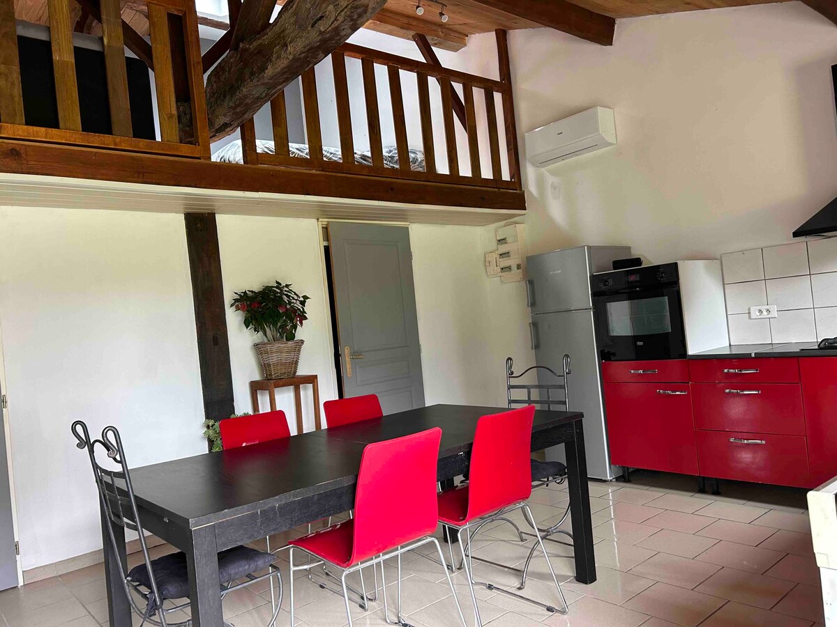 Ein alter Kuhstall, der in einen zweistöckigen Schlaf 12 Gîte auf einer 20 Hektar großen Mikrofarm für Aufenthalte mit Familie oder Freunden umgewandelt wurde. 50 Fahrminuten von Bordeaux entfernt. Einfache Anbindung an den Atlantik (Arcachon/Düne von Pilat), mittelalterliche Schlösser und Dörfer, Thermalbad, viele Schlösser in den Weinregionen Bordeaux, ruhige Kanäle, Seen, die malerische Dordogne und sogar das Baskenland und die Pyrenäen. Ein guter Ausgangspunkt für Radfahren, Angeln und Wanderurlaub oder für einen Bauernhof, um das ruhige französische Bauernleben zu erleben.