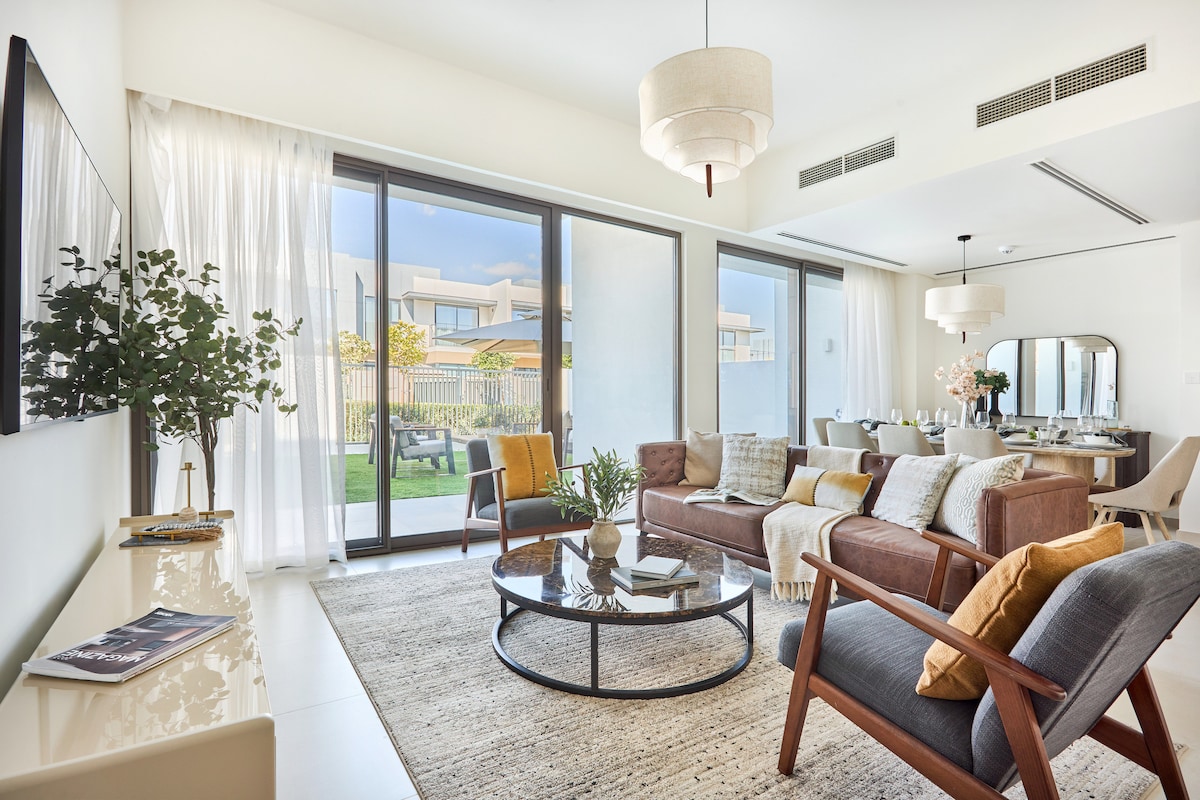 **Stay in this beautifully upgraded home with stylish décor and freshly painted walls. This 3BR + maid’s villa in Nara, The Valley spans 1,873 sq ft and features a private backyard, balcony, and spacious living areas for up to 7 guests. Set in a serene community with resort-style amenities, it offers comfort, style, and convenience with easy access to Dubai’s top attractions—perfect for families or groups.