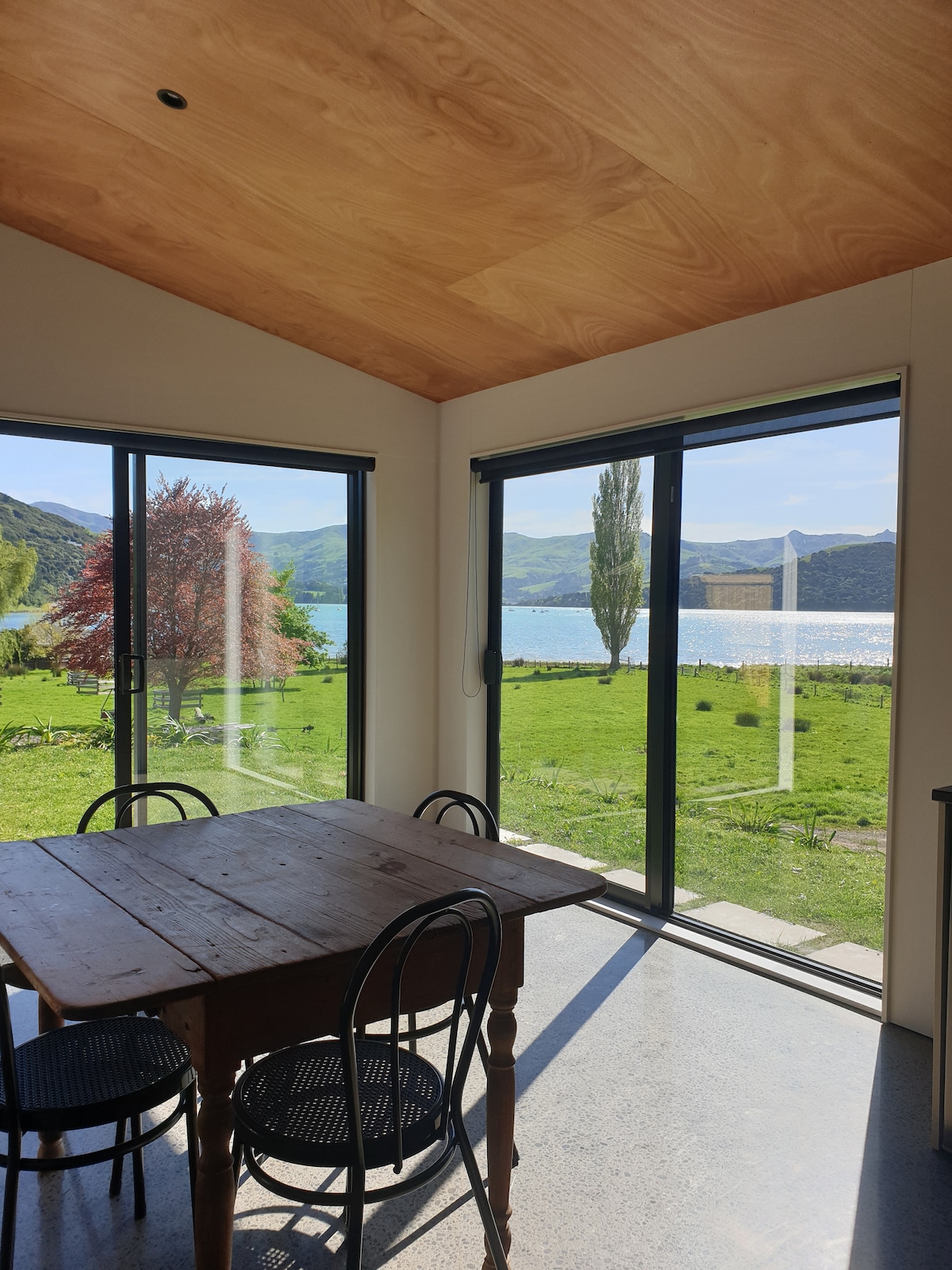 Diese charmante Villa im Herzen von Wainui hat Charakter. Mit Panoramablick auf den Akaroa Harbour und die umliegenden Hügel ist dies ein hervorragender Ort zum Entspannen und Erholen. Komm und genieße die einzigartige Umgebung zu jeder Jahreszeit. Dieses geräumige Familienhaus verfügt über 4 (+1) Schlafzimmer, eine Küche/Wohnzimmer mit einem großen Holzofen und ein weiteres Wohn-/Esszimmer mit einem offenen Kamin, die sich beide zur Veranda hin öffnen. Ich freue mich darauf, dich in meinem herrlichen Zuhause und seiner Umgebung begrüßen zu dürfen.