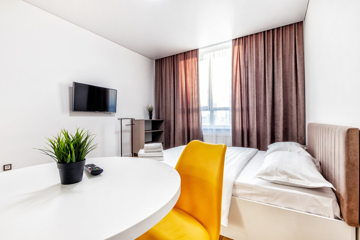 Moderne und gemütliche Wohnungen in Astana. Wir freuen uns, dich einzuladen, deine Zeit in Komfort zu verbringen und dich wie zu Hause zu fühlen. Wir haben versucht, in allen Wohnungen den gleichen Stil aufrechtzuerhalten, was einen gewissen Komfort für unsere Gäste schafft. In der Wohnung findest du alles, was du zum Kochen benötigst, Highspeed-Internet (WLAN), SMART-TV