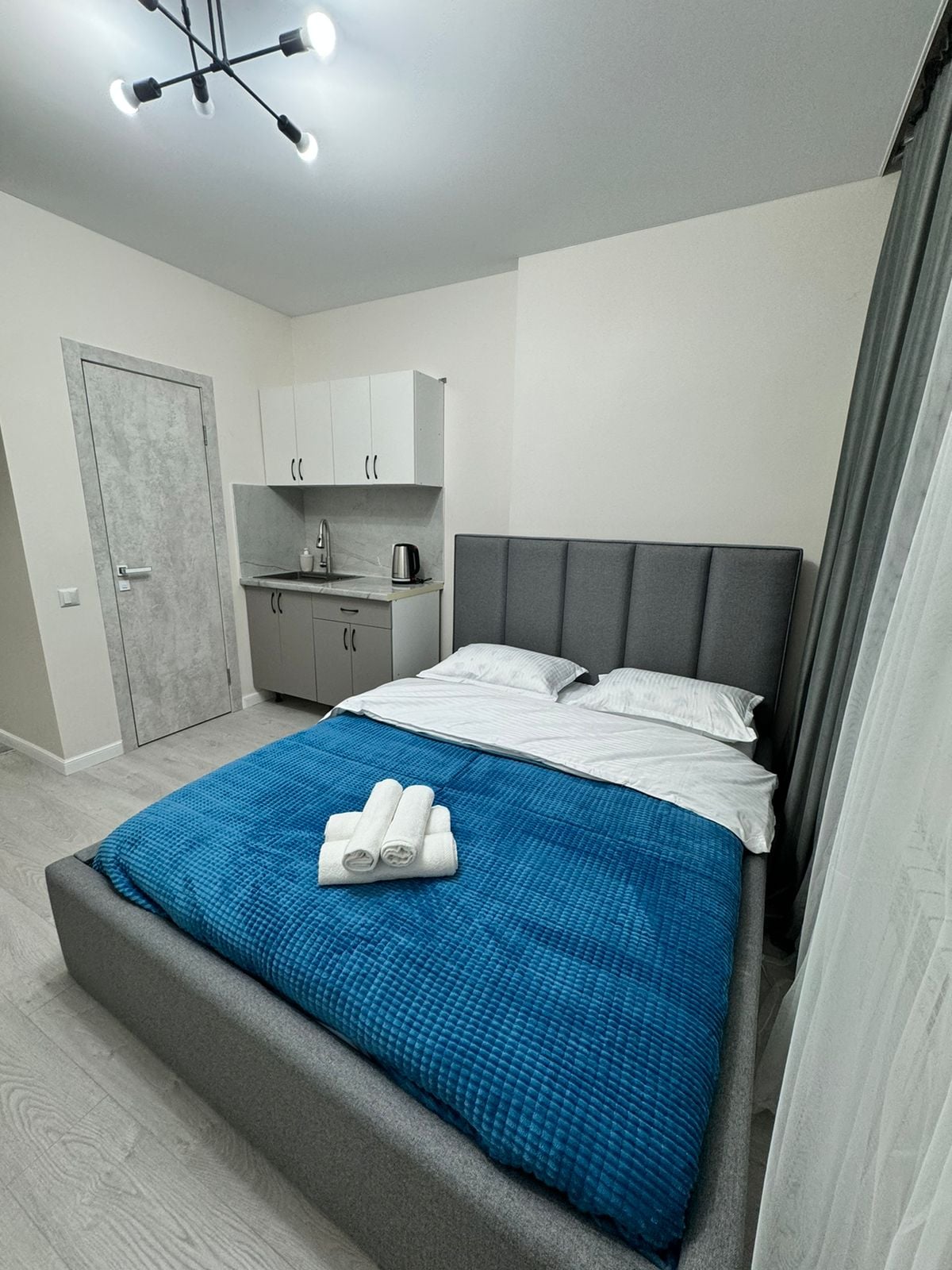 Hallo lieber zukünftiger Gast :) Planen Sie eine Reise nach Kasachstan? Wir laden Sie ein, bei uns zu übernachten. Wir sind ein Paar aus Astana, Svetlana und Viktor. Wir vermieten eine Einzimmerwohnung mit einem Schlafzimmer, einer separaten Küche und einem Kleiderschrank. Wir haben gerade Renovierungsarbeiten speziell für Gäste durchgeführt. Das Haus befindet sich in einem Wohngebiet - im Zentrum des rechten Ufers. Die Promenade ist 15 Minuten zu Fuß entfernt. 15 Autominuten entfernt befindet sich ein Einkaufszentrum mit einem Kino.