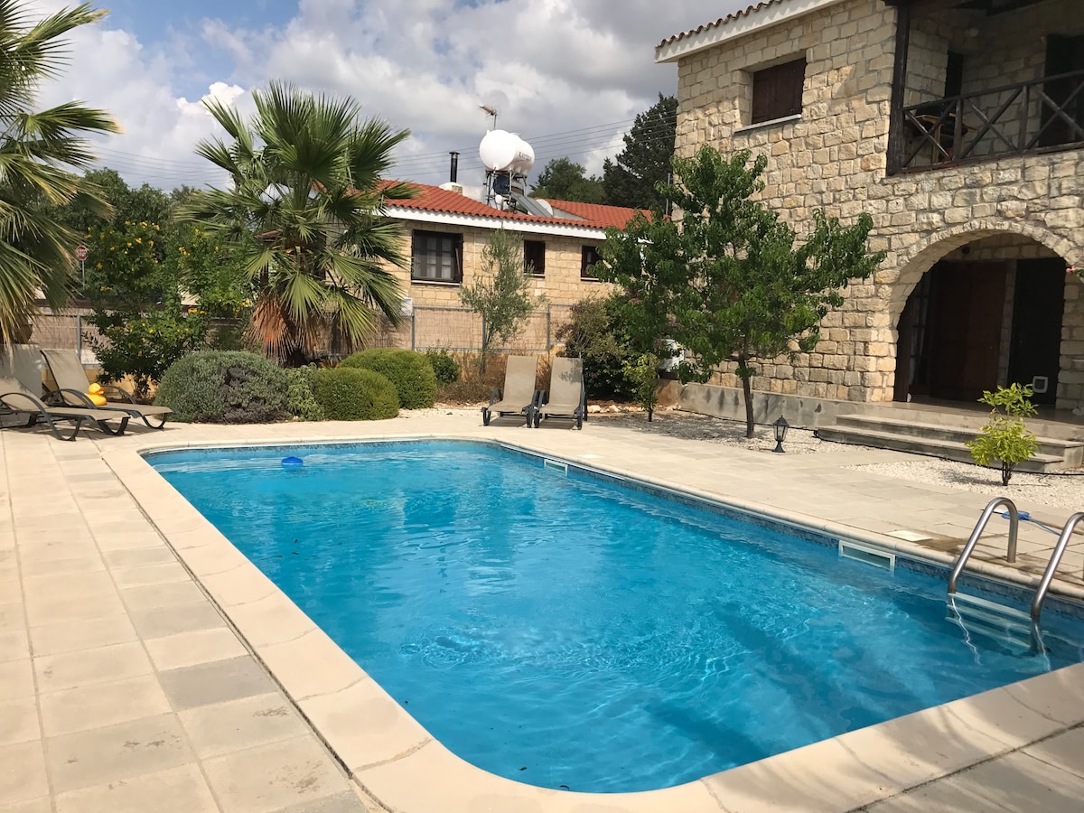 Entspanne dich in deiner eigenen Privatsphäre mit Familie und Freunden in einem zweistöckigen Haus mit schönen Gärten und einem Swimmingpool. Es verfügt über 5 Schlafzimmer (6 Betten) und bietet Platz für 10 Personen. Es verfügt über eine schöne Veranda mit atemberaubender Aussicht auf die Berge und Gärten. Es ist 15-20 Autominuten vom Meer und eine halbe Stunde von den Platres Bergen entfernt. Genieße die Gärten mit Oliven-, Kiefern-, Zitrusbäumen, Vougenvilias und einer Vielzahl von anderen. Neben dem Pool gibt es einen Kiosk, wo du dein Essen und Getränke genießen kannst.