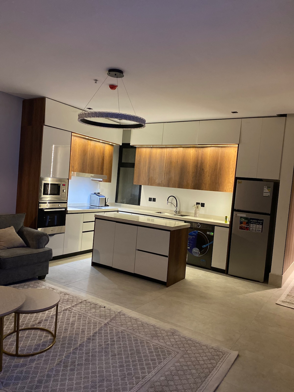 Genießen Sie einen luxuriösen Aufenthalt in der Ora Suite Zwei Schlafzimmer im Herzen von Al-Khobar Es umfasst ein Heimkino mit einer 100-Zoll-Leinwand und einem Soundsystem, eine Kaffeeecke mit einer Espressomaschine und eine professionelle Popcornmaschine, um die Kinoatmosphäre zu vervollständigen 🍿🎥 Verschiedene Freizeitspiele, um Gäste zu unterhalten 🎲 und eine elegante Innenschaukel Und eine voll ausgestattete Küche mit den neuesten Elektrogeräten 👩🍳 Der Hauptraum verfügt über einen 65-Zoll-Bildschirm. Eine besondere Lage in der Nähe von Dhahran Expo, Al-Raka Corniche und Al-Mousa Park. Selbst-Check-in für absolute Privatsphäre und Komfort. Perfekt für Familien oder Geschäftsreisende
