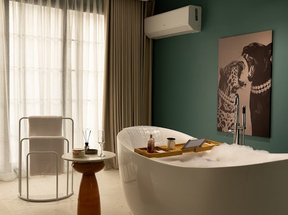 Luxuriöse Wohnung mit elegantem Design – private Badewanne und komfortable Lounge