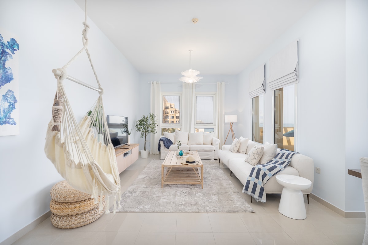 Wake up steps from the beach on Ras Al Khaimah’s iconic Marjan Island, surrounded by ocean views, resorts, cafés, and walking paths. This stylish 1-bedroom apartment is designed for guests who love calm mornings, beach walks, and peaceful island living. With private beach access, resort-style pools, and a clean modern interior, it’s the perfect escape for couples, small families, business travelers, and staycationers.