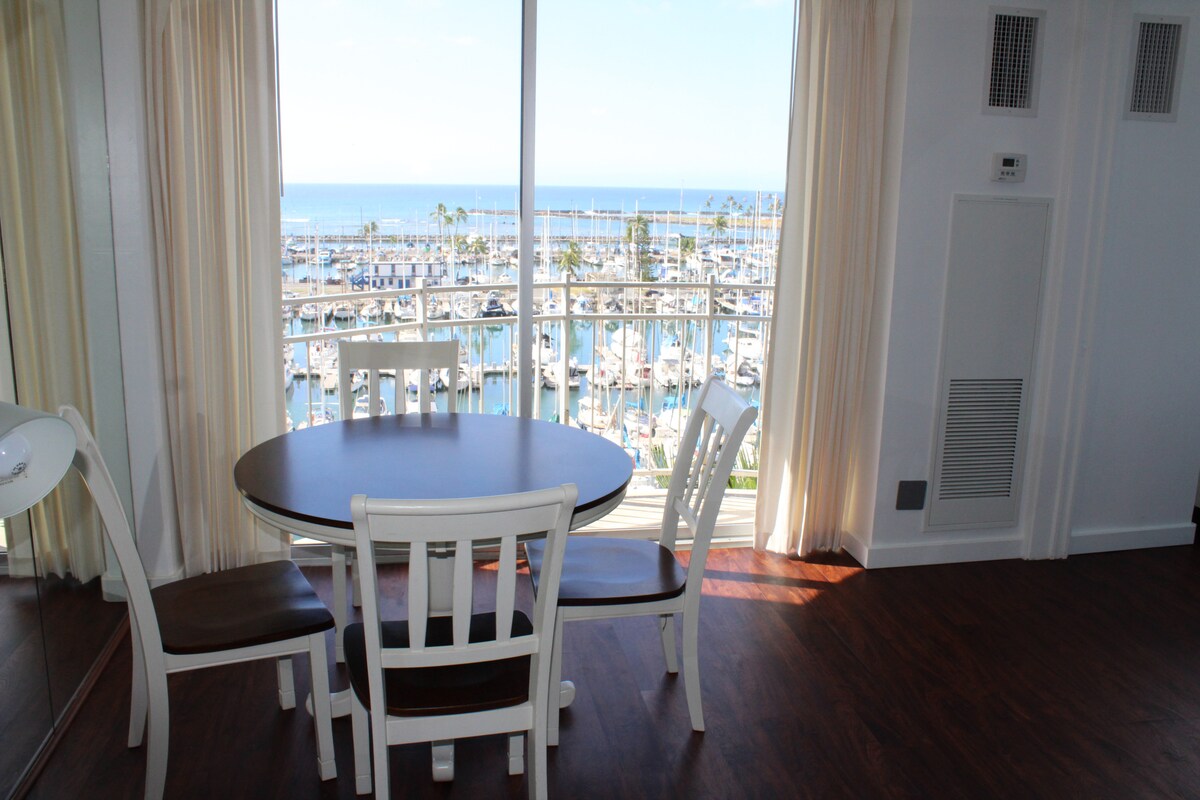 Newly renovated 1-bedroom with stunning panoramic ocean views! Enjoy an open concept layout with a king bed, full-size appliances, and a sofa bed in the living room. Features include central AC, fast WiFi, TVs in both rooms, and a large pocket door for privacy. A Juliet balcony to take in the ocean view including the Friday night fireworks. Walk to Ala Moana Mall, Hilton Hotel, and Duke’s Lagoon plus more Garage parking available for $33 a night 24/7 security, laundry room in building