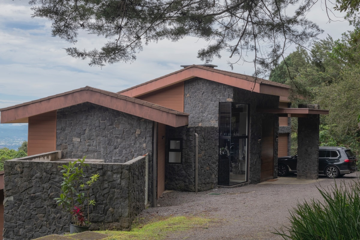 Casa Los Cielos ist elegant, aber rustikal, mit schönen costa-ricanischen Holzarbeiten. Alle Zimmer bieten eine atemberaubende Aussicht, einschließlich des San Jose-Tals und der umliegenden Berge. Es liegt in einer kühlen (78F), ruhigen Bergregion, ist perfekt für Familien, Retreats oder Gruppen von Freunden. Genieße den Kamin, die Feuerstelle, den Grill und die Pferde auf dem benachbarten Grundstück. Haustiere sind willkommen! - 20 Minuten von der Innenstadt von San Jose entfernt - 50 Autominuten vom Flughafen Int'l entfernt - 1h 45m vom Strand entfernt - 5 Autominuten von Restaurants, Geschäften