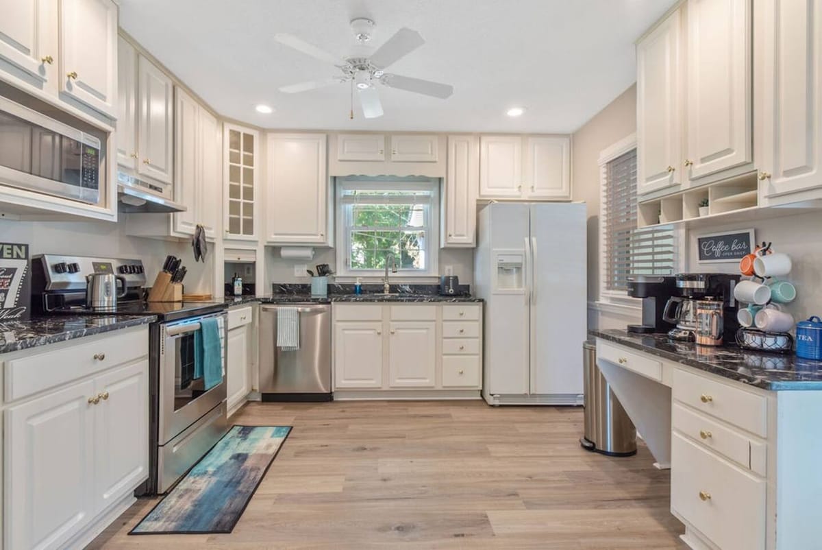 Nur 1,3 Meilen vom Zentrum des Elon University Campus entfernt, an der University Drive~Interstate 40/85 ist 5 Minuten entfernt~In der Nähe von Einkaufsmöglichkeiten und lokalen Restaurants~Eckgrundstück in kleiner Nachbarschaft mit 6' privatem eingezäuntem Hinterhof~Haustierfreundlich~Hintere Veranda~Alle neuen LVP~Kein Teppich~Frisch gestrichen~Geschmackvolle Einrichtung~Weiche Memory-Schaum-Matratzen, Kingsize- und 2 Queensize-Betten~Neue Samsung-Fernseher in allen Schlafzimmern und im Wohnzimmer~Waschmaschine und Trockner~Verdunkelungsvorhänge in den Schlafzimmern~Aufmerksamer lokaler Gastgeber~Bereit für einen tollen Aufenthalt!
