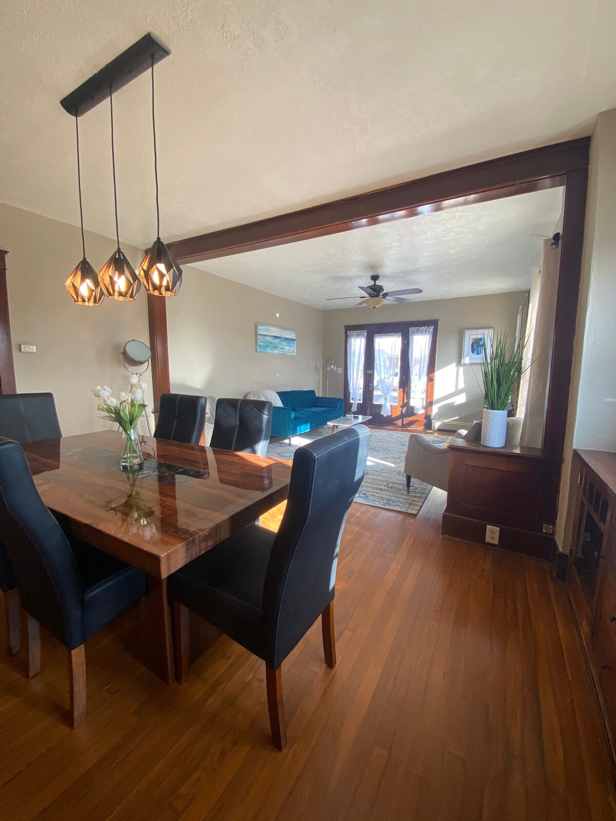 STR #2939 In der Innenstadt von Alamosa gelegen, bietet The Ross einen neu renovierten Raum für 8 Gäste mit 2 Wohnbereichen mit 55-Zoll-TVs, einem formellen Essbereich, einem Bürobereich und einem Leseraum. Die untere Etage bietet ein Schlafzimmer mit einem Kissen-Kingsize-Bett, ein kinderfreundliches Etagenzimmer, ein komplettes Badezimmer und eine gut ausgestattete Küche. Die obere Etage verfügt über 2 Schlafzimmer - ein komplettes & ein Queensize-Bett, Badezimmer mit Badewanne und Lese-/Spielzimmer. Genieße wunderschöne Einbauten undoriginalen Holz aus dieser 1908 erbauten Schönheit!