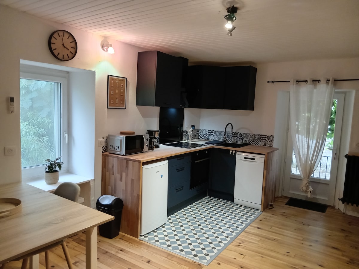 Ungewöhnliche Unterkunft in der Atmosphäre "Hobbit" eingebettet am Ende eines wilden Gartens mit Blick auf die Stadt. Der Zugang erfolgt über einen Wanderweg (steil). Die Unterkunft besteht aus einem Wohnzimmer mit Kamin, einer kleinen Küche, einer Nische für das Schlafzimmer, einem kleinen Bad, einer Terrasse mit Blick auf das Tal und die Stadt (1 km) und neu, einem mit Holz beheizten Bad (außer im Sommer) Kerzen und Musik stehen für die Atmosphäre zur Verfügung Ideal für einen romantischen Aufenthalt oder einen Moment außerhalb der Zeit!