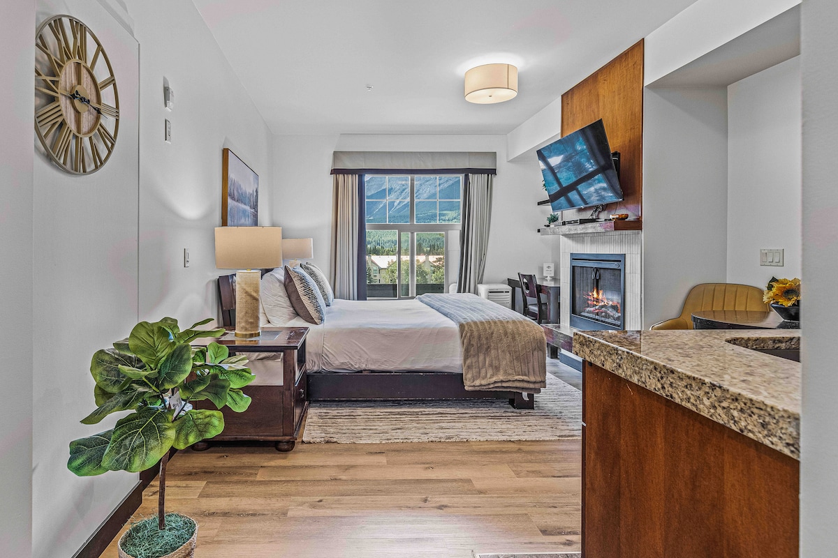 Mit Blick auf die wunderschöne Rocky Mountain vom Balkon, Schlafzimmer und Wohnzimmer bietet dir diese neu renovierte Einzimmerwohnung alle Annehmlichkeiten, die du erwarten würdest. Das Schlafzimmer verfügt über ein komfortables Kingsize-Bett. Im Wohnzimmer befindet sich ein hochwertiges Schlafsofa für zusätzliche Gäste. Der Kamin sorgt für ein gemütliches Ambiente. Kostenloses WLAN und Smart-TV mit Amazon Prime Video und Shaw TV für deine Freizeit. Voll ausgestattete Küche und tiefe Badewanne mit Dusche können dir das Gefühl geben, zu Hause zu sein!