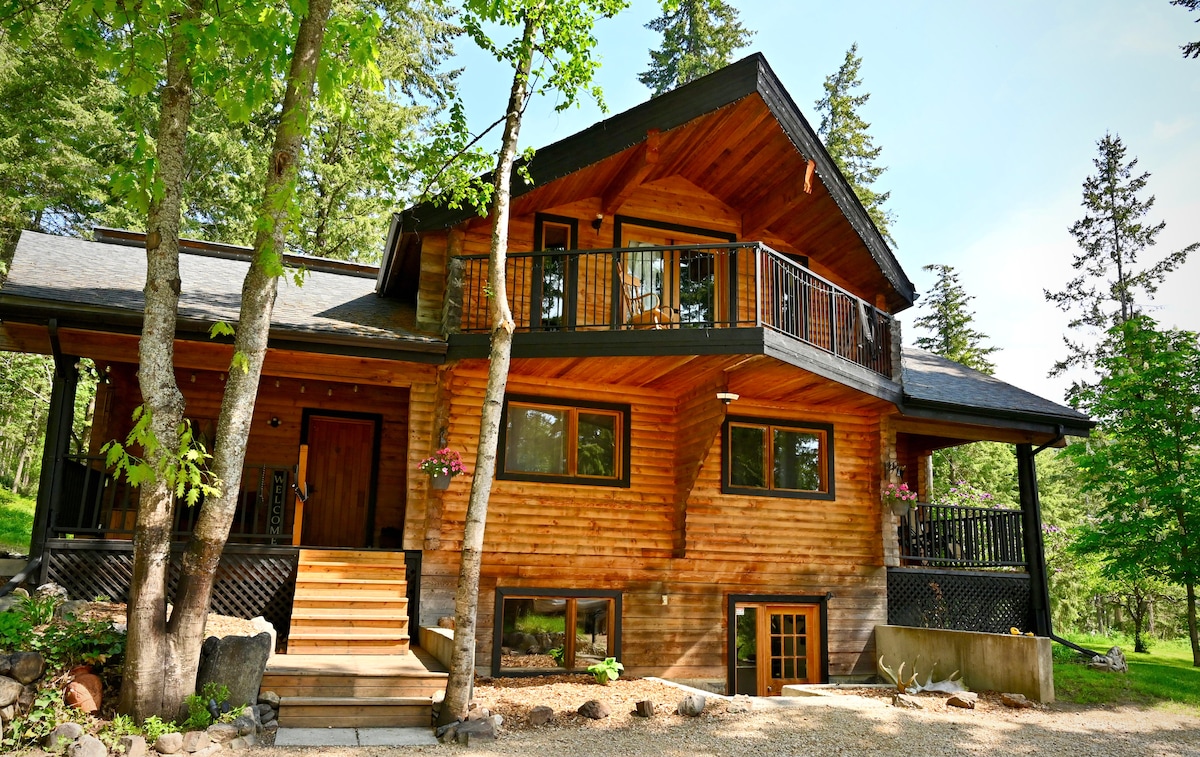 Log Home on 5 acres, pet friendly, A/C, BBQ,