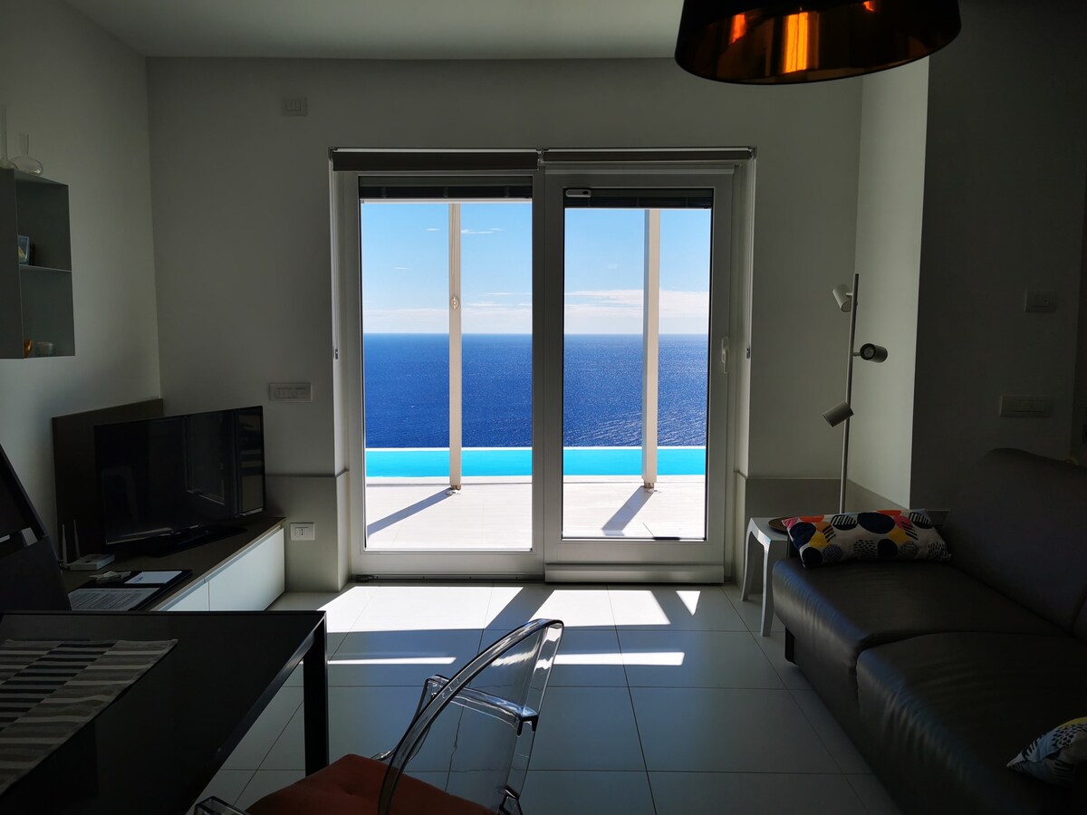 Suite Imperial, 120 mq, all’interno di una villa storica di fine ’800 finemente ristrutturata. Ambienti ampi e luminosi con vista mare totale e panoramica sulla costa. Dispone di cucina attrezzata, bagno di servizio, camera matrimoniale con ingresso indipendente e bagno en-suite, elegante living con divano letto, area Smart TV con streaming e letto singolo in stile napoleonico. Accesso al parco e alla piscina a sfioro vista mare.