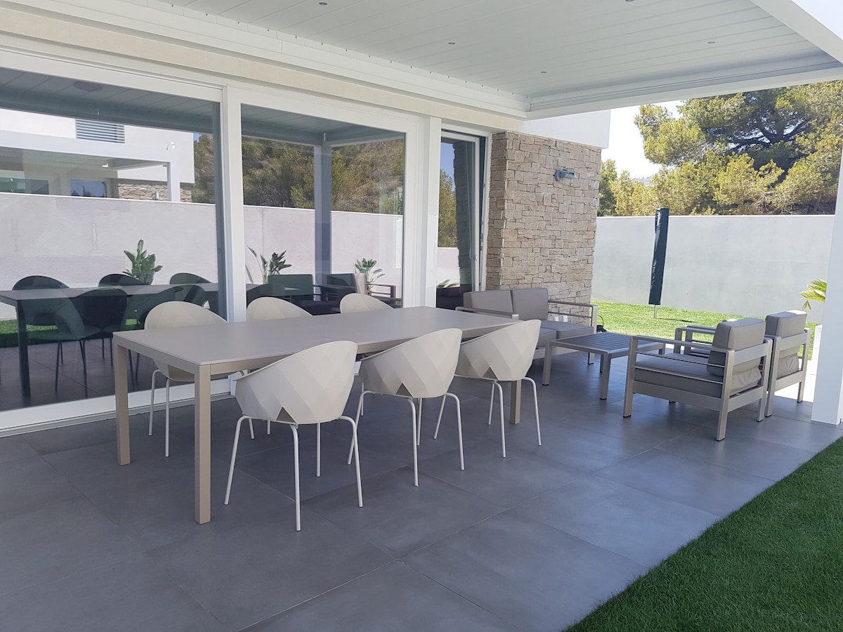 Das Haus bietet Platz für 6 Personen, Küche und Wohnzimmer auf 50m2, Zugang zum Pool und geschlossene Garage. Im Obergeschoss befinden sich die 3 Schlafzimmer, eines mit eigenem Bad. Das großzügige Design des Außenbereichs verfügt über einen privaten Loungebereich und einen gedeckten Sitzbereich. Fußbodenheizung versorgt die Häuser von Alcossebre mit angenehmer Eigenwärme, auch in der Nebensaison und in den Wintermonaten.