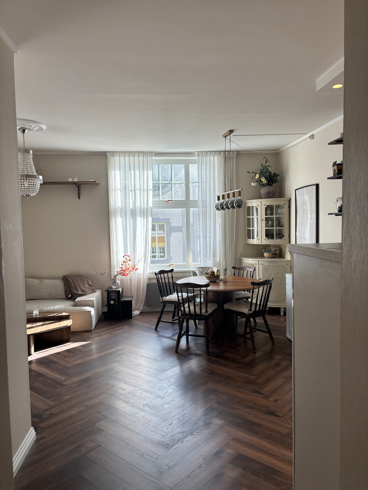 Welcome to my flat in the historical art nouveau center of Ålesund. The house was built in 1906 and has big windows ensuring plenty of natural light and view on some of the most beautiful buildings in Ålesund. Bedroom facing quiet backside. Right next to house you find nice restaurants , cafes and a famous wine-bar. There is a public free of charge parking 24/7 aprox 10 minutes walk from flat .