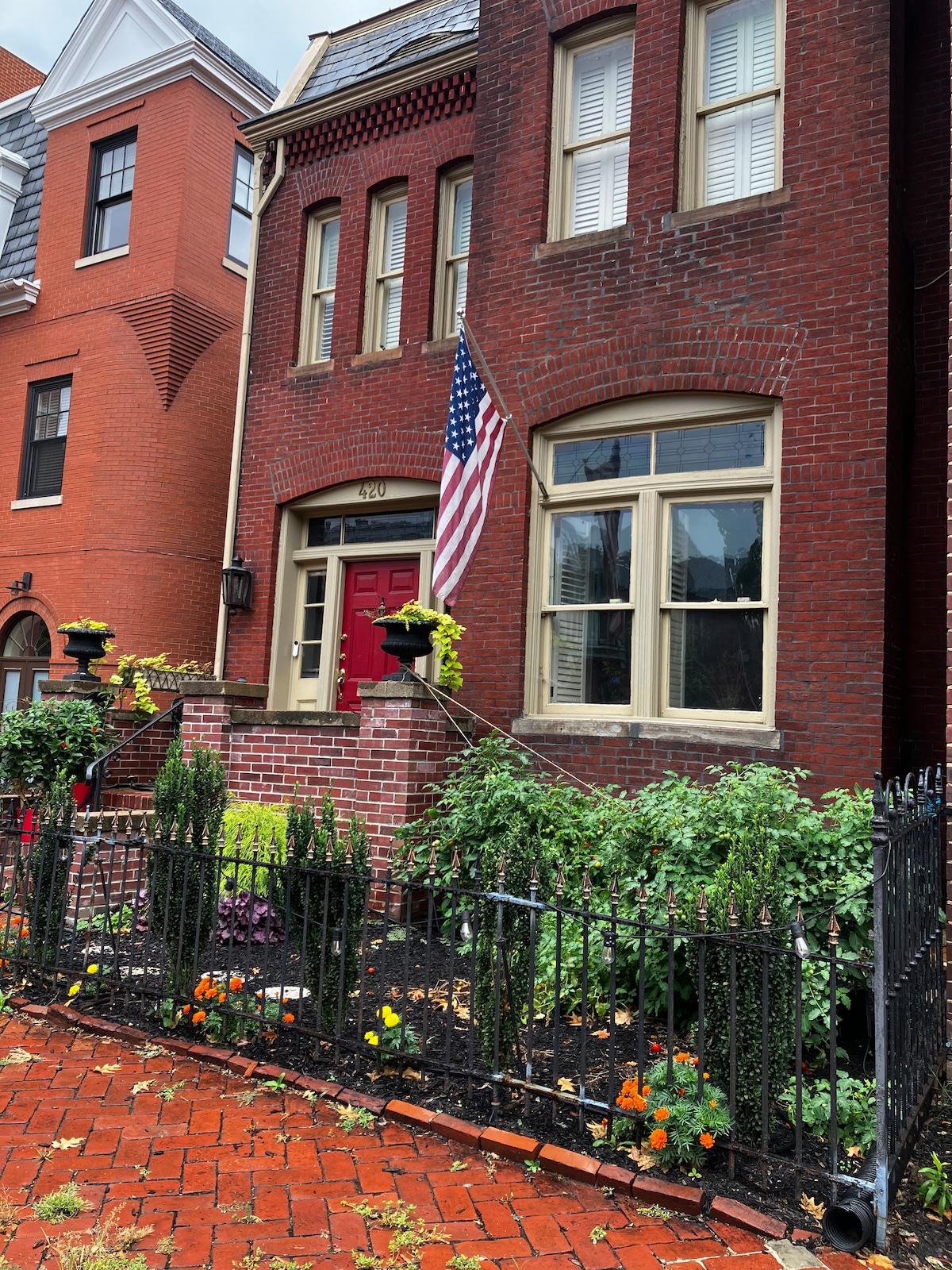 Gehobene Wohnung im Untergeschoss mit 12 Fuß hohen Decken und eigenem Garteneingang. Fast 65 Quadratmeter – Wohnzimmer, Küchenzeile, Schlafzimmer, begehbarer Kleiderschrank, ebenerdige Dusche. Dekoriert mit Antiquitäten und modernen Annehmlichkeiten. Luxuriöse Saatva-Matratze und Garnier Thebaut Bettwäsche. Frühstücksleckereien sowie Snacks, Kaffee usw. Zwei Blocks zu Restaurants/Geschäften/Lebensmittelgeschäften/usw. Perfekt für Familienbesuche, Touristen und Geschäftsreisende in WDC und Alexandria. 3,3 Meilen zum Flughafen Reagan Nat. Persönlich betrieben und gewartet. Keine Kameras.