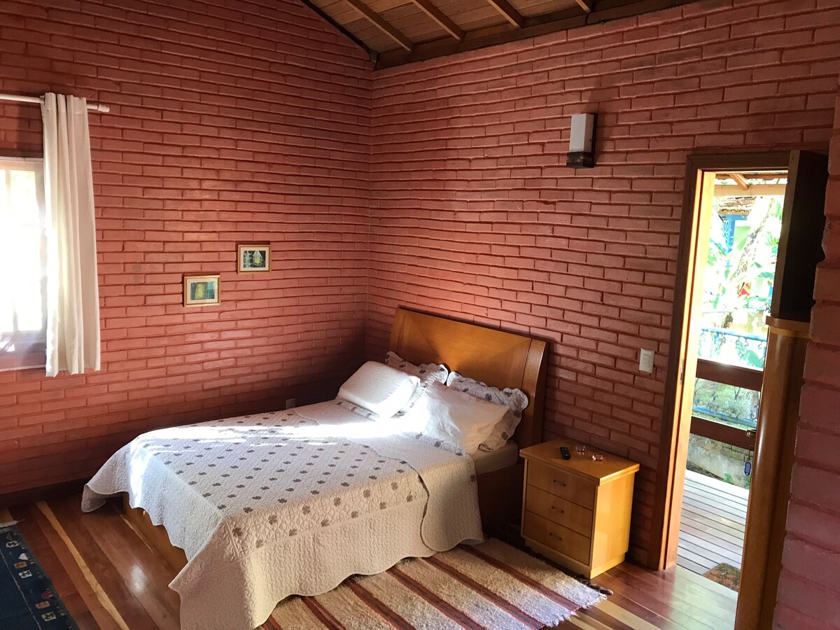 Das Chalet hat 35 m² Wohnfläche und befindet sich auf einem Grundstück von 71.000 m², das größtenteils aus Mata Atlântica besteht. Es verfügt über ein Schlafzimmer, Bad, Küche, Wohnzimmer und Balkon. Ein ausziehbares Queensize-Sofa und eine Doppelschaumstoffmatratze bieten Platz für 4 Personen. Es verfügt über einen bewaldeten Garten und einen See mit Fischen, Angeln ist erlaubt. Die Umgebung bietet eine großartige Gelegenheit, sich mit der Natur zu verbinden. Das Hotel liegt in der Nähe der angesagten Brauereien der Berge von Espírito Santo. Check-in von 17 bis 21 Uhr Check-out 14 Uhr Wir haben Internet über Glasfaser