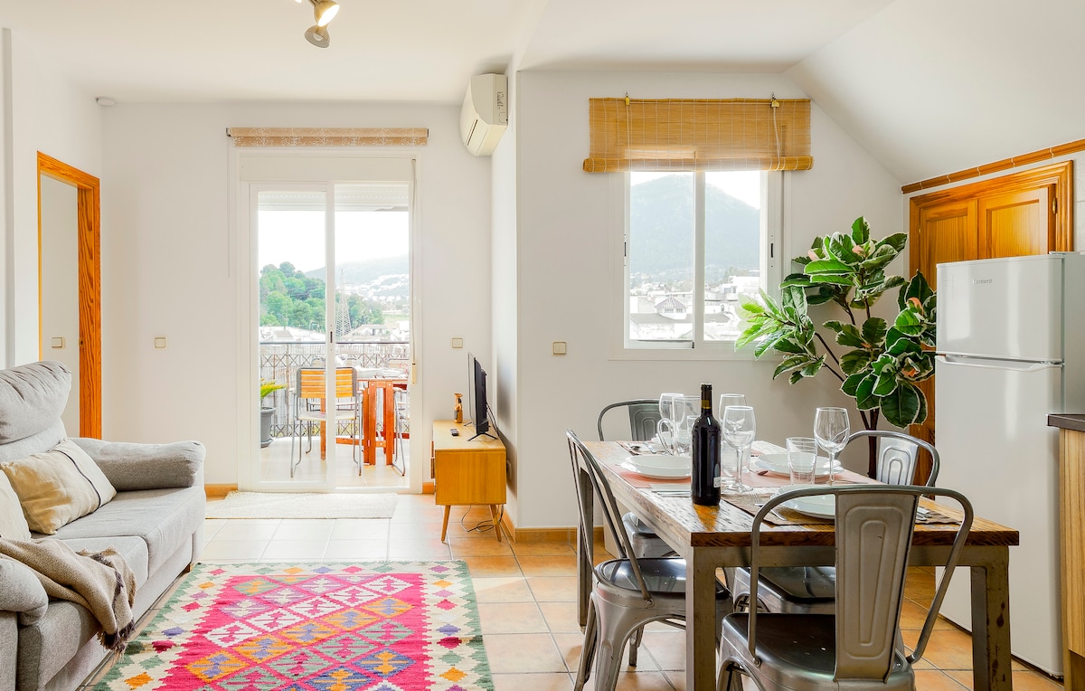 Stilvolle 2BR/2BA-Wohnung in Alhaurín de la Torre, nur 15 Minuten von Málaga und dem Strand entfernt. 9 Schlafplätze mit einem Doppelbett, zwei Doppelstockbetten, einem Ausziehbett und einem großen Sofa. Genieße zwei private Terrassen - eine mit Lounge-Sitzgelegenheiten, die andere mit Grill und Sonnenliegen. Voll ausgestattete Küche, Highspeed-WLAN und modernes Design. Restaurants und Läden sind zu Fuß erreichbar. Perfekt für Familien, Gruppen oder mobiles Arbeiten!